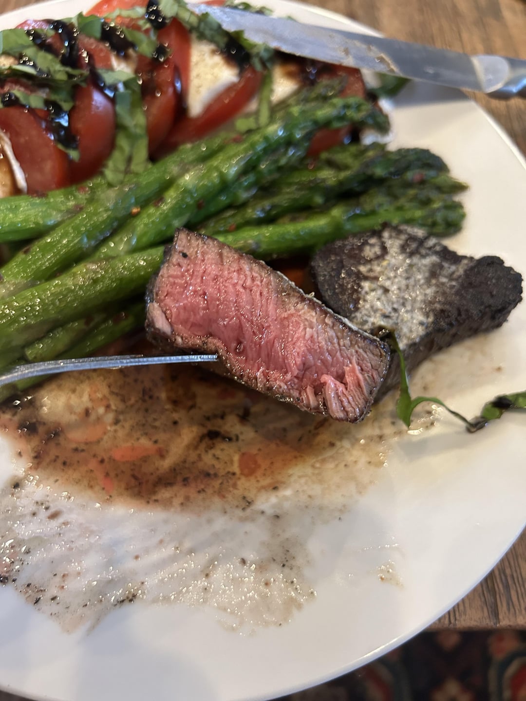 Caprese and asparagus sides!?! Amazing! Try the Balsamic glaze over the asparagus. You won’t be disappointed