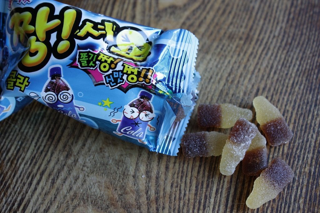 It was sour and fruit flavoured with many colours. The packaging was blue and shiny if I recall and it was filled with little hemispherical gummies covered in sugary/sour crystals.