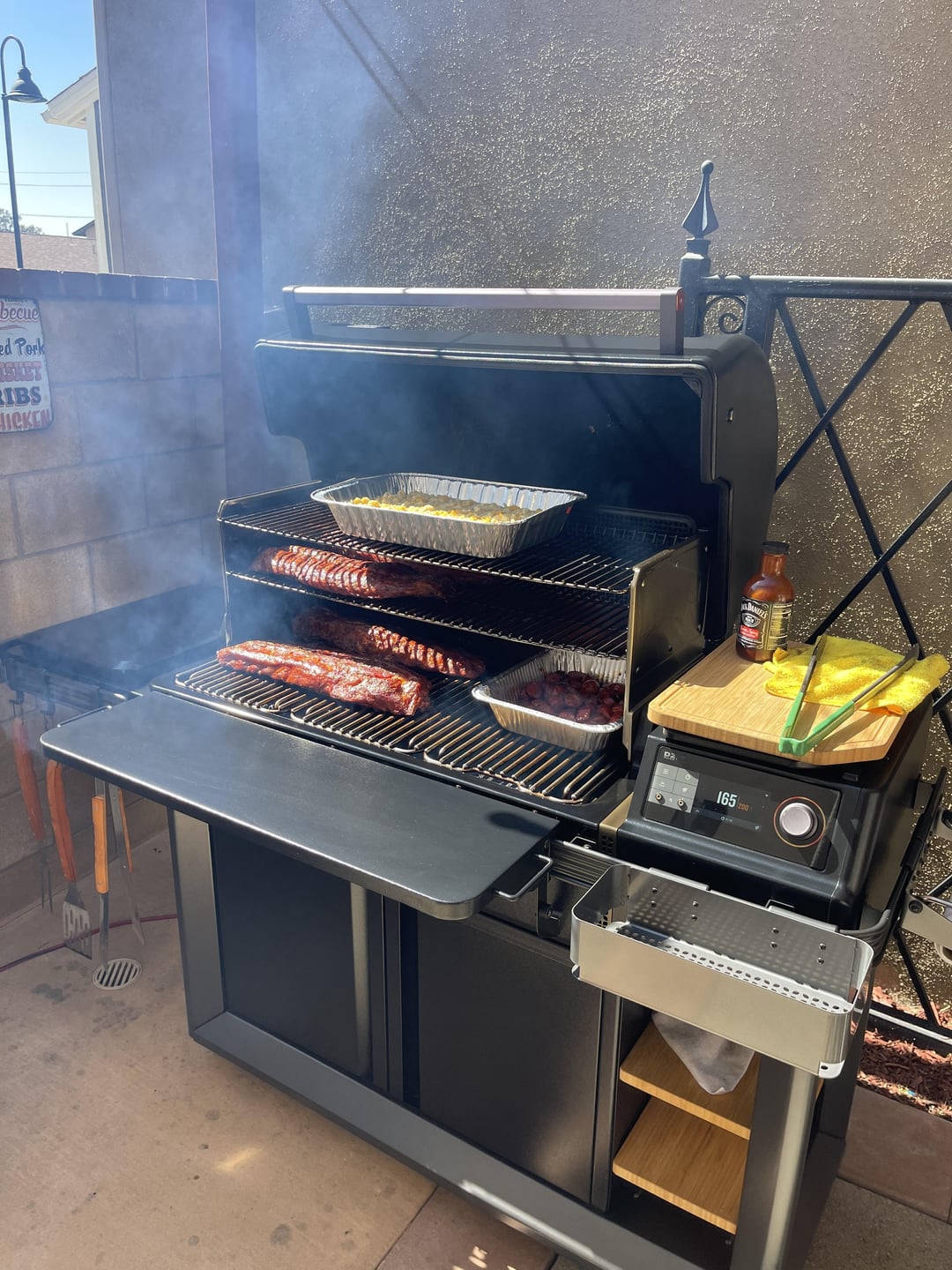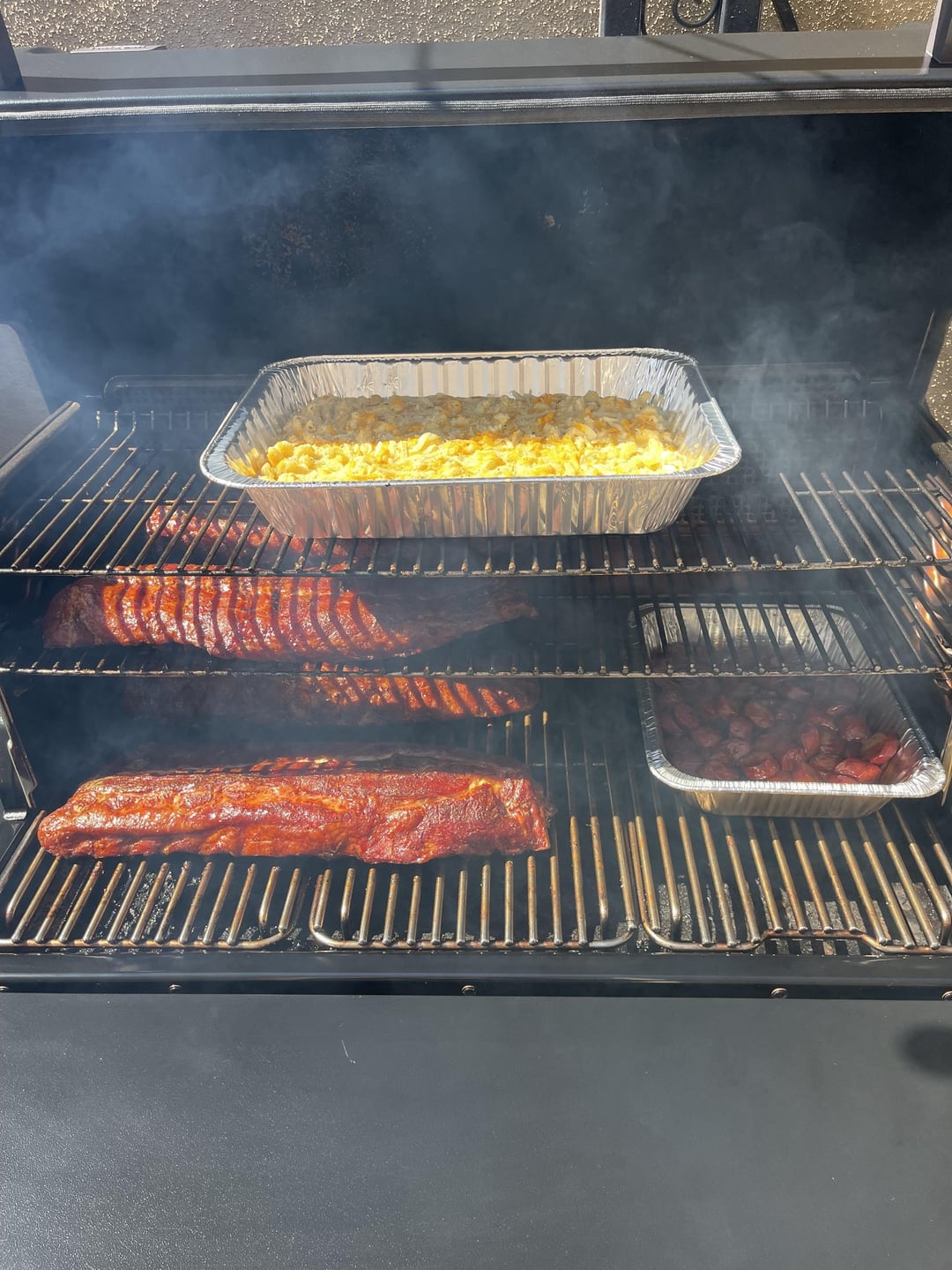 MAC N CHEESE, 4 BABY BACKS AND SAUSAGE LINK CANDY