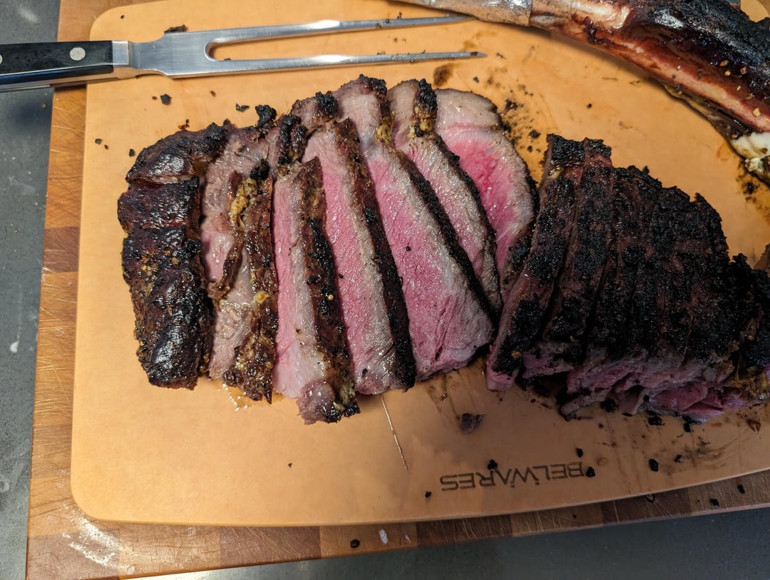 Seared on the soapstone at 700f dome temp for about 35 seconds a side.