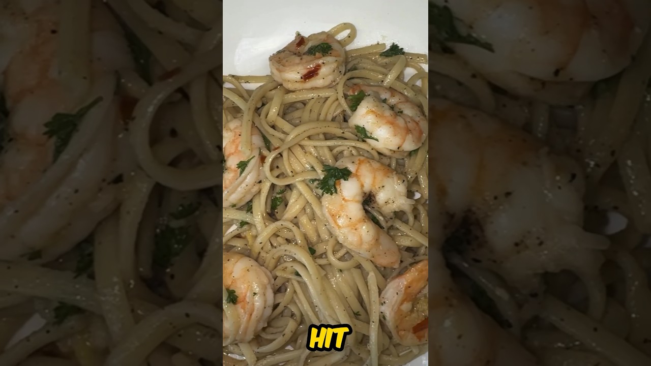 you got to make this easy low calorie shrimps campy quick high protein and perfect for a post-workout meal add butter olive oil and garlic to a pot with a Sprinkle of red pepper flakes cook for 1 minute then add 3/4 of a cup of chicken stock and let simmer for 3 minutes while that’s simmering cook 190 G of pasta in a pot of water until right before Al Dente drain saving some of that pasta water and set aside to the chicken stock mixture add shrimp cook for five minutes then add lemon zest and the juice of a lemon add your pasta and some of that pasta cooking water sprinkle with salt black pepper and add chopped parsley and I promise it’s going to hit