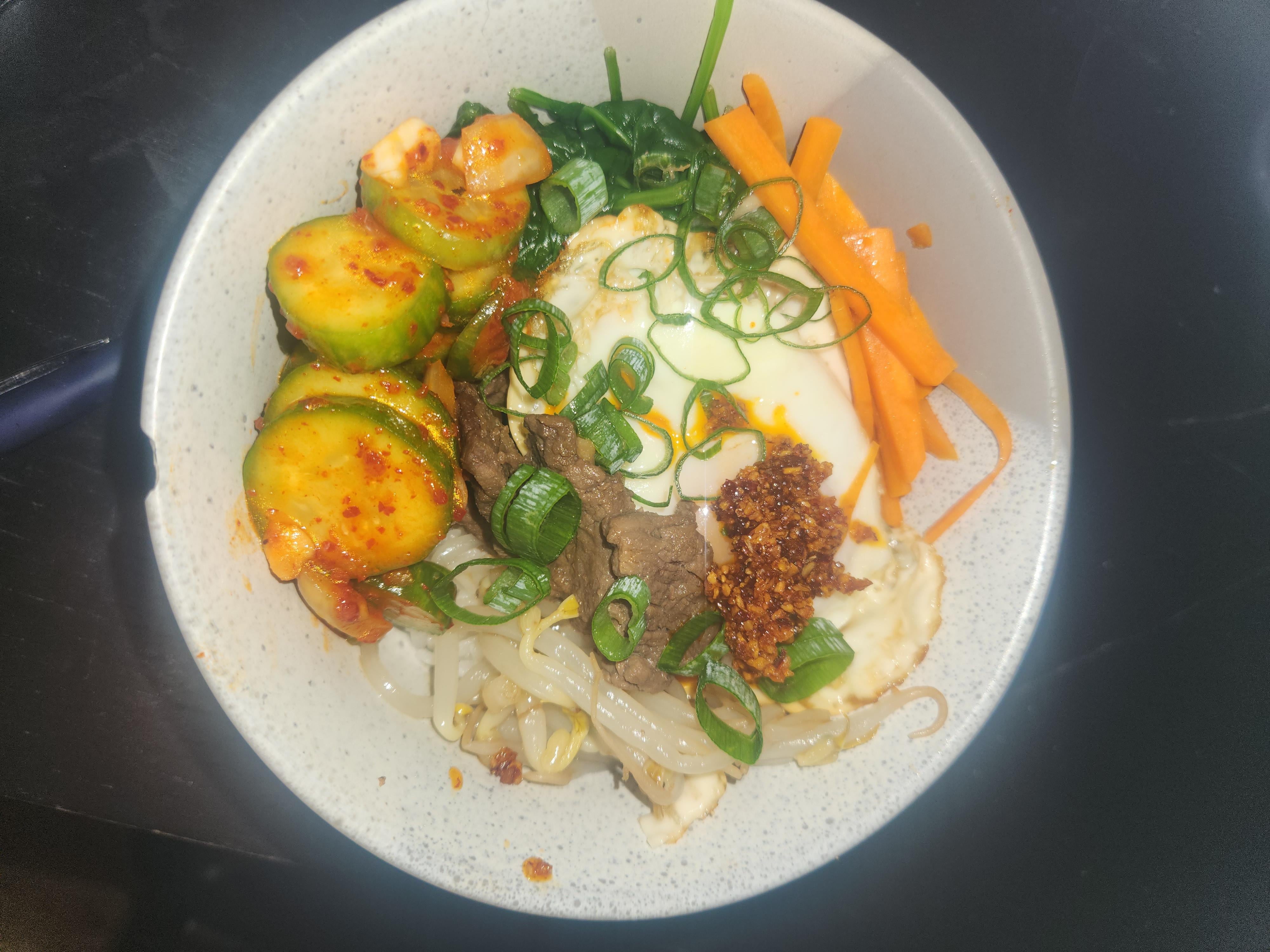 My first go at bibimbap by SimoneSaysAAAH 1 Comment Fragrant_Tale1428 2 years ago Cucumber muchim is one of my favorite additions to bibimbop. This looks so tasty!Write A CommentYou must be logged in to post a comment.