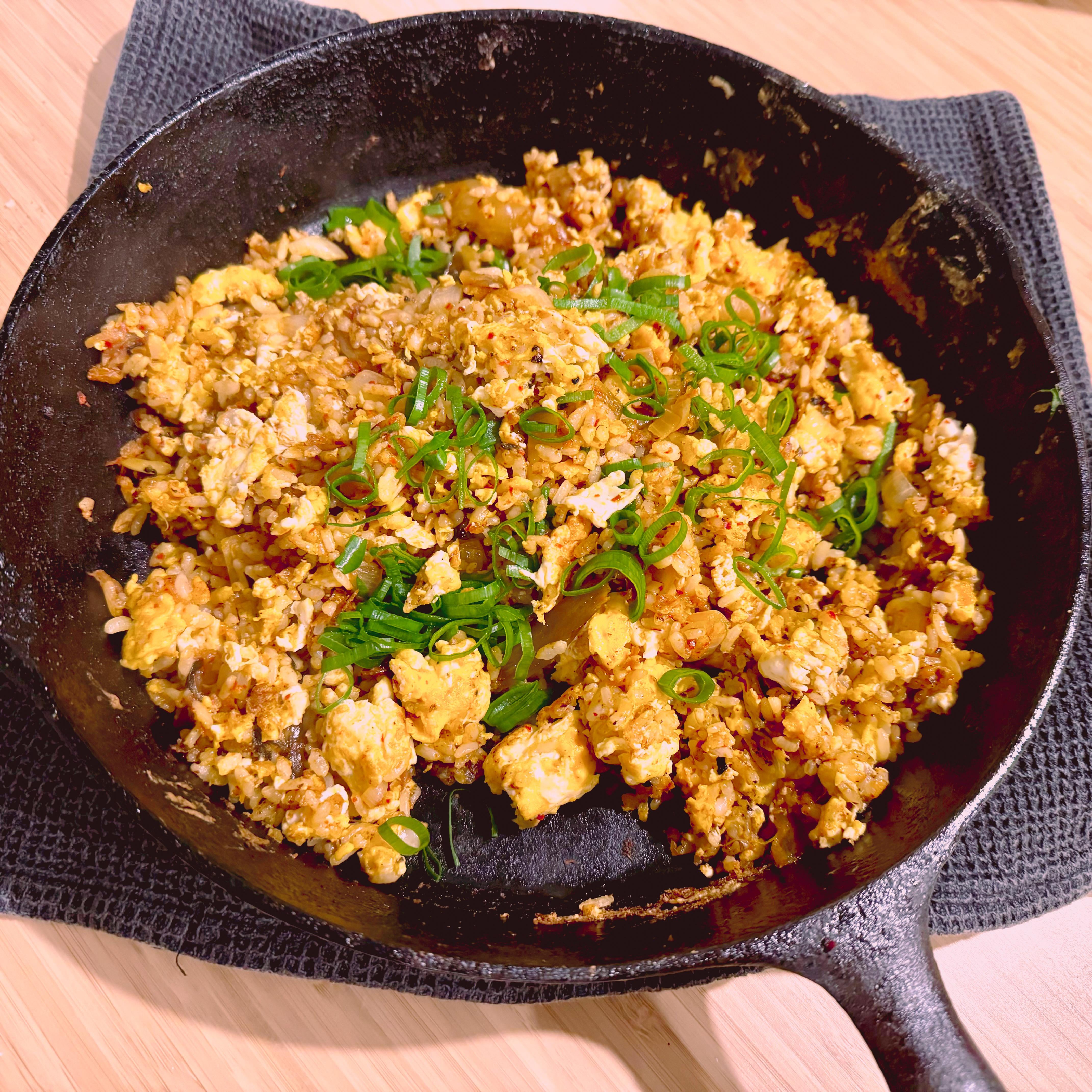 Using a cast iron pan means I can get it really hot and makes perfect fried rice.