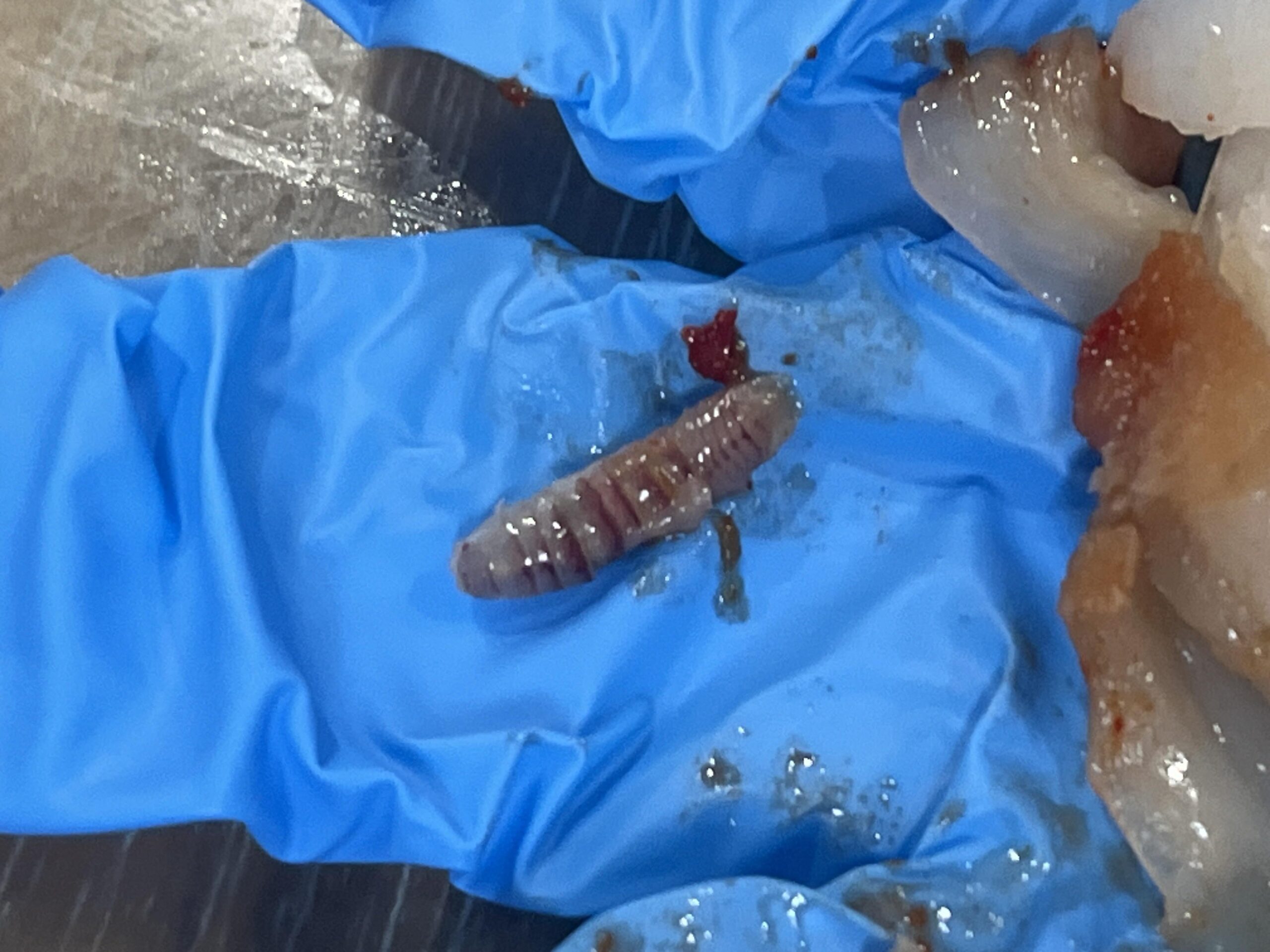 It reminds me of those parasites that eat the tongue of the fish but I have no knowledge of parasites though. However, this is almost certain a parasite.
