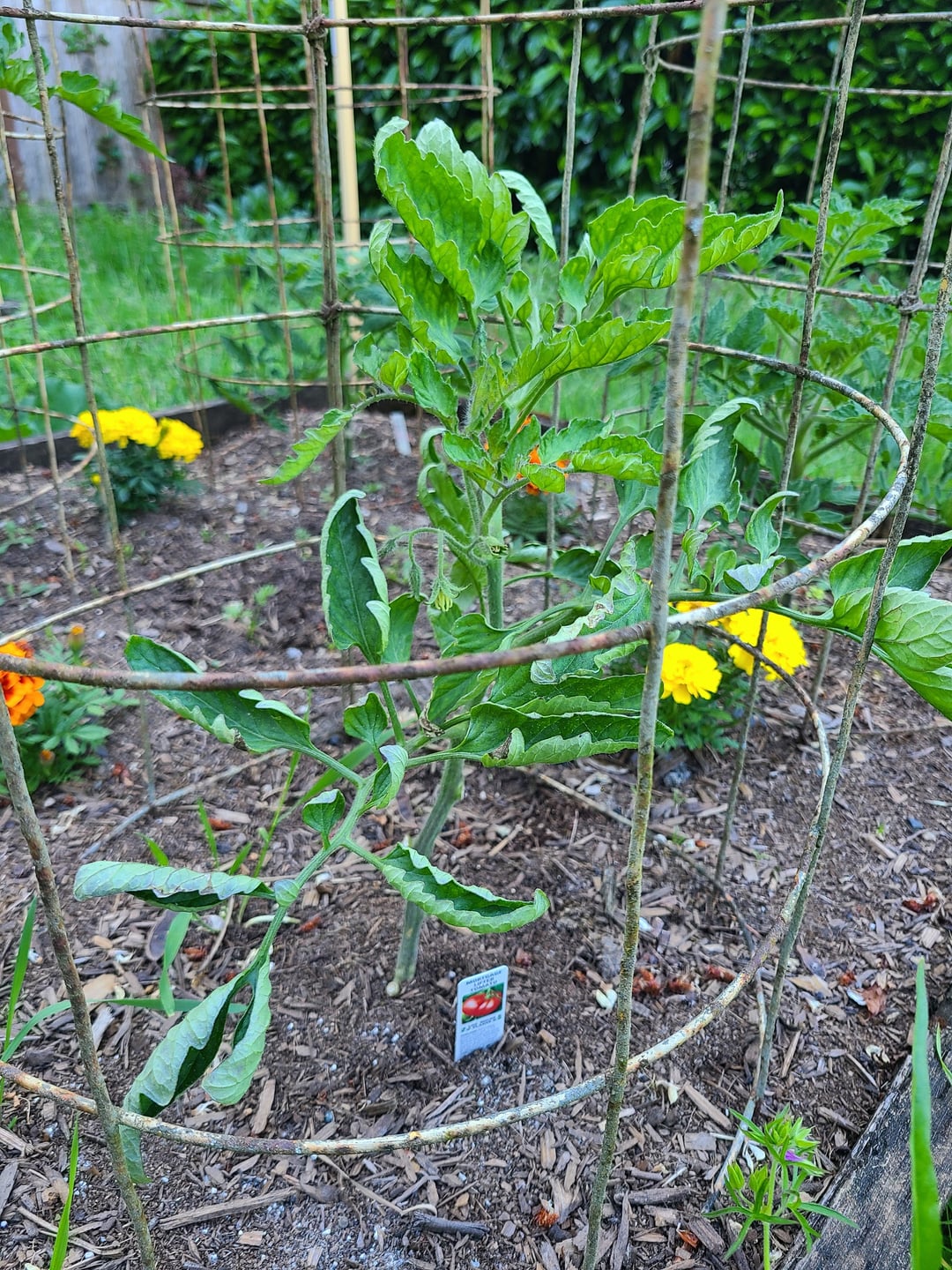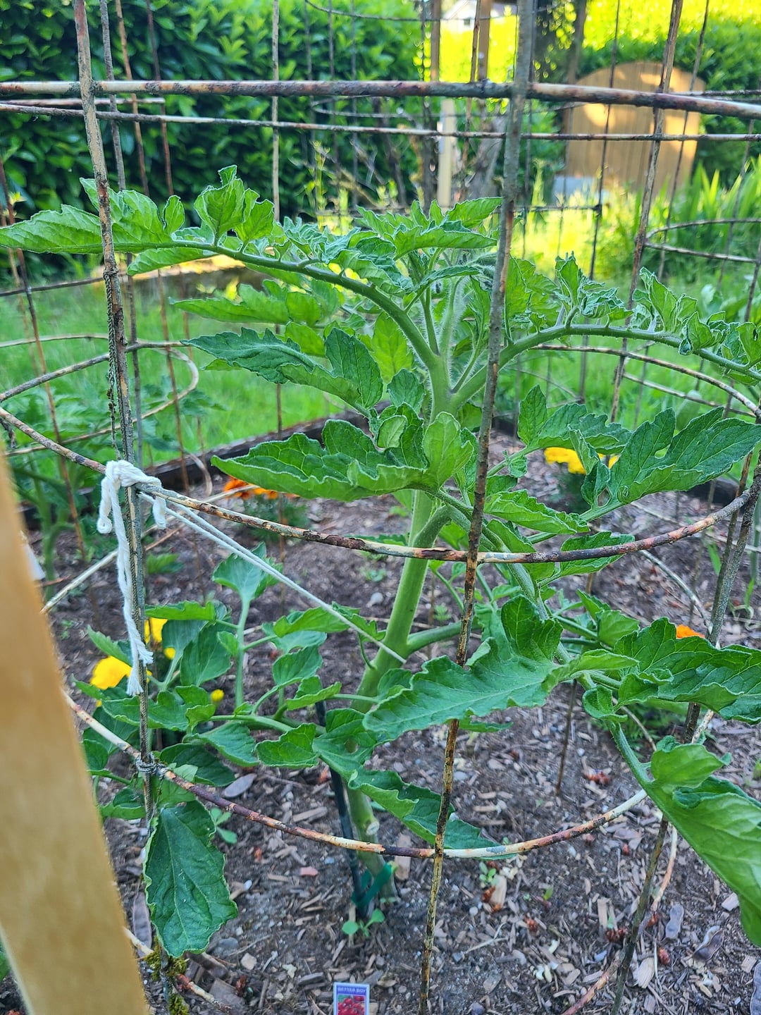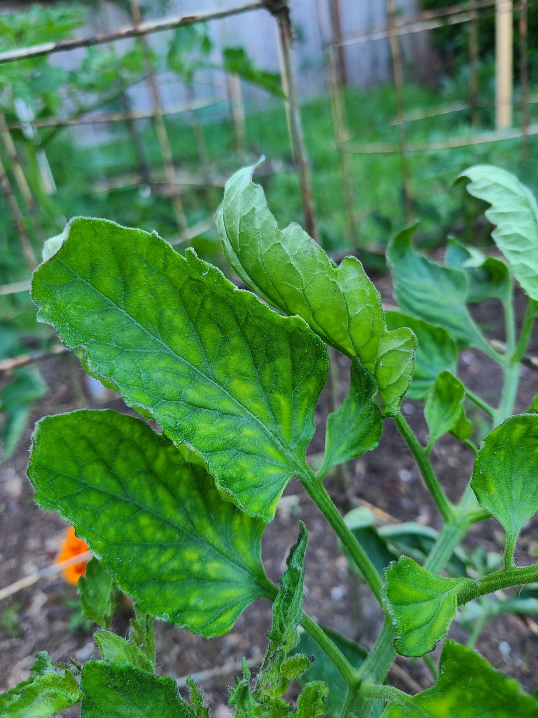 Any clues as to what could be going on with the Mortgage Lifter? Deficiency, overwatering, hopefully it isn't a disease or something…? I'm concerned but too much of a beginner to know which angle to tackle. I know I'm probably going to have enough tomatoes this year regardless, but this one was the variety my boyfriend chose so I'd really like to keep it alive if possible. 😅