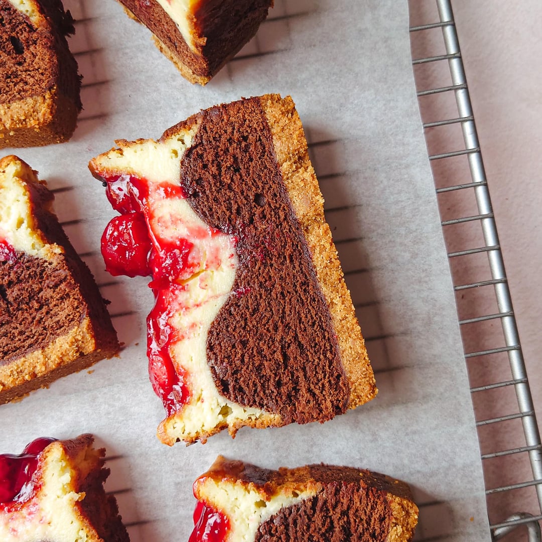 I haven't posted about my baking for ages! Here's one from today, a cherry cheesecake brownie loaf, recipe from Sainsbury's magazine: