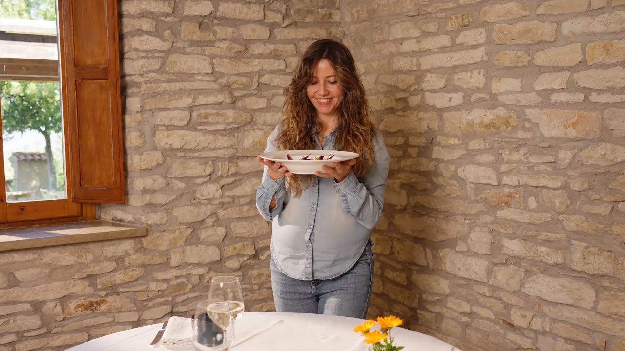[Musica] Corallini di farro con crema di zucca e radicchio agrodolce Una nuova ricetta vegetale davvero saporita sbucciamo e priviamo dei semi la zucca e la tagliamo soffriggiamo la cipolla tritata aggiungiamo patate e zucca a cubetti lasciamo tostare un po’ e ultimi la cottura aggiungendo dell’acqua frulliamo il tutto e aggiustiamo di sale prepariamo una soluzione con acqua zucchero e aceto di V portiamo ad ebollizione e vi immergiamo il radicchio già sfogliato e lavato non appena il bollore riprende lo scoliamo lo facciamo raffreddare e lo tagliamo In una casseruola tostiamo i Corallini con poco olio e aggiungiamo subito la crema di zucca aiutandoci con poca acqua alla volta li portiamo a cottura per ottenere la consistenza di un risotto disponiamo sul piatto cercando di livellare aggiungiamo e i semi di zucca tostati Concludiamo con un filo d’olio la pasta di farro era la pasta preferita dai truschi e romani fatta con il farro coltivato dai nostri Agricoltori perlop nel centro Italia Questa pasta ha indici di glutine più bassi Come quasi tutti i cosiddetti grani antichi Inoltre è caratterizzata da una tendenza dolce non ci resta che [Musica] assaggiarla n [Musica]
