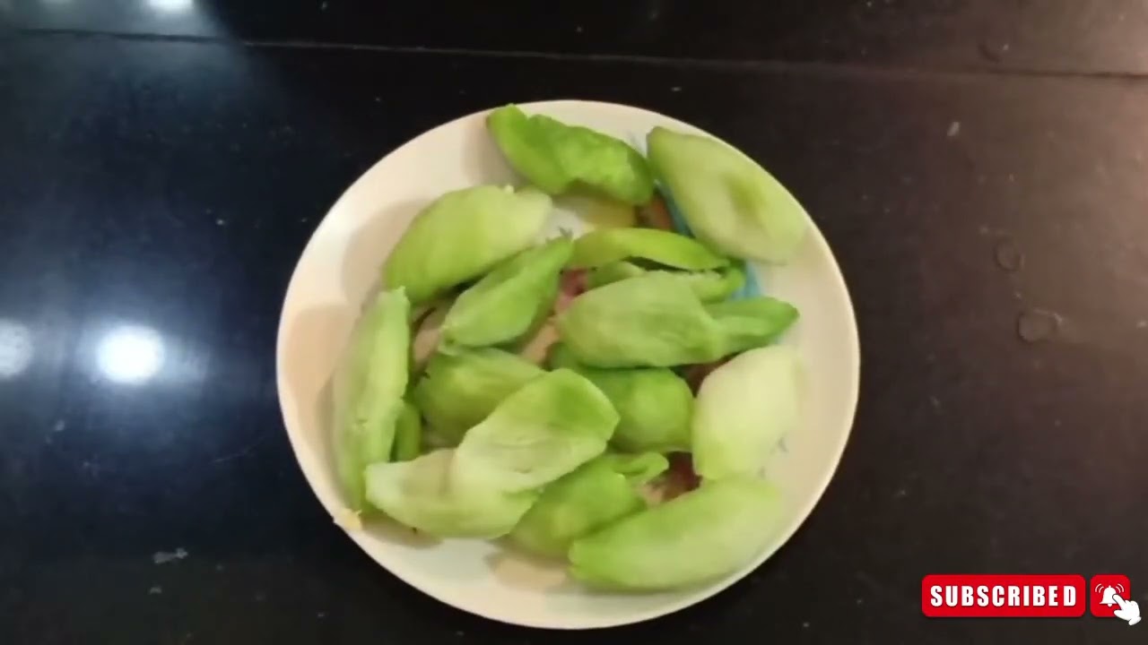 हेलो फ्रेंड्स कैसे हैं आप आज मैं बना रही हूं भरमा करेली की सब्जी वीडियो शुरू करने से पहले आप मेरे चैनल को लाइक और सब्सक्राइब कर लीजिए चलिए बिना देरी करते हुए वीडियो शुरू करते हैं मैंने लिए हैं आधा किलो करेले और करेलो को पहले से छीलकर रख लिया है और उसमें कट लगा दिया था थोड़ा सा कट लगा दिया फिर उ करेलो को नमक लगाकर 20 मिनट के लिए मैंने रख दिया इधर अब हम करेलो के लिए मसाला तैयार कर लेते हैं एक कटा हुआ प्याज लेंगे और थोड़ा सा लहसुन दो सूखी लाल मिर्च [संगीत] लेंगे और हल्दी फिर उसमें डालेंगे एक चम्मच धनिया पाउडर थोड़ा सा नमक स्वाद अनुसार क्योंकि हमने पहले भी करेलो में नमक लगा दिया था अब डालेंगे दो चम्मच पानी अब इसका पेस्ट बना [संगीत] लेंगे इधर गैस पर थोड़ा सा तेल चढ़ा लेंगे जब तक तेल गर्म होता है तब तक हम करेलो में मसाला भर लेते हैं [संगीत] अब तेल में थोड़ा सा जीरा [संगीत] और एक पिच हिंग डालेंगे और अब तेल में करेलो को डालेंगे [संगीत] [प्रशंसा] [संगीत] और ढक कर रख देंगे फिर 10 मिनट बाद अब हम इसको देखेंगे कि सब्जी हुई है या नहीं और करेलो को अलट पलट कर चलाएंगे और देखेंगे सब्जी हमारी हुई है या नहीं नहीं हुई है तो और 10 मिनट [संगीत] रखेंगे फिर 10 मिनट बाद अब हम उसको देखेंगे कि सब्जी हुई है या नहीं और करेलो को अलट पलट कर चलाएंगे और देखेंगे सब्जी हमारी हुई है या नहीं [संगीत] [प्रशंसा] [संगीत] और फिर सर्व के लिए करेली की सब्जी तैयार है [संगीत]