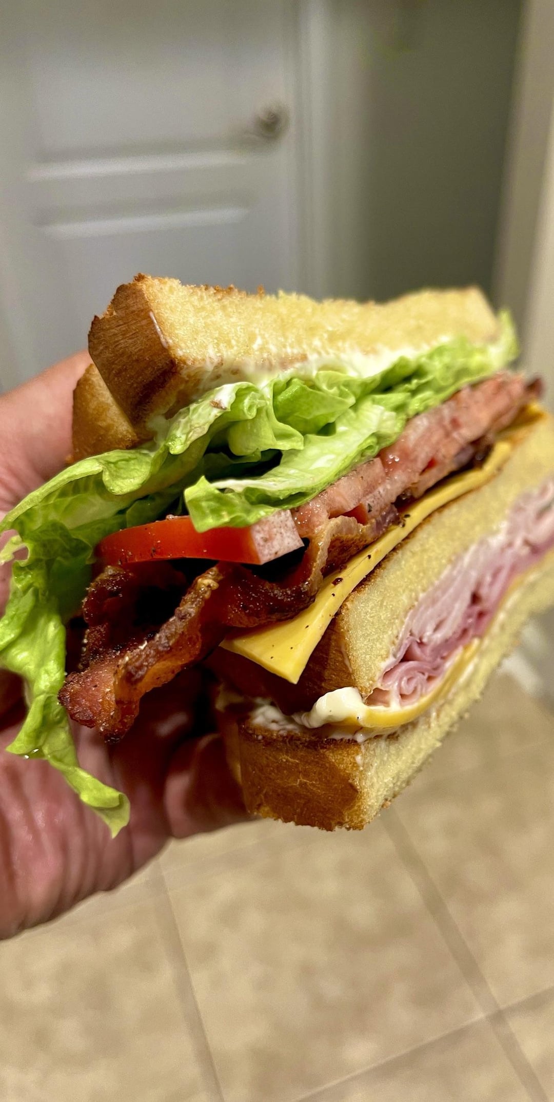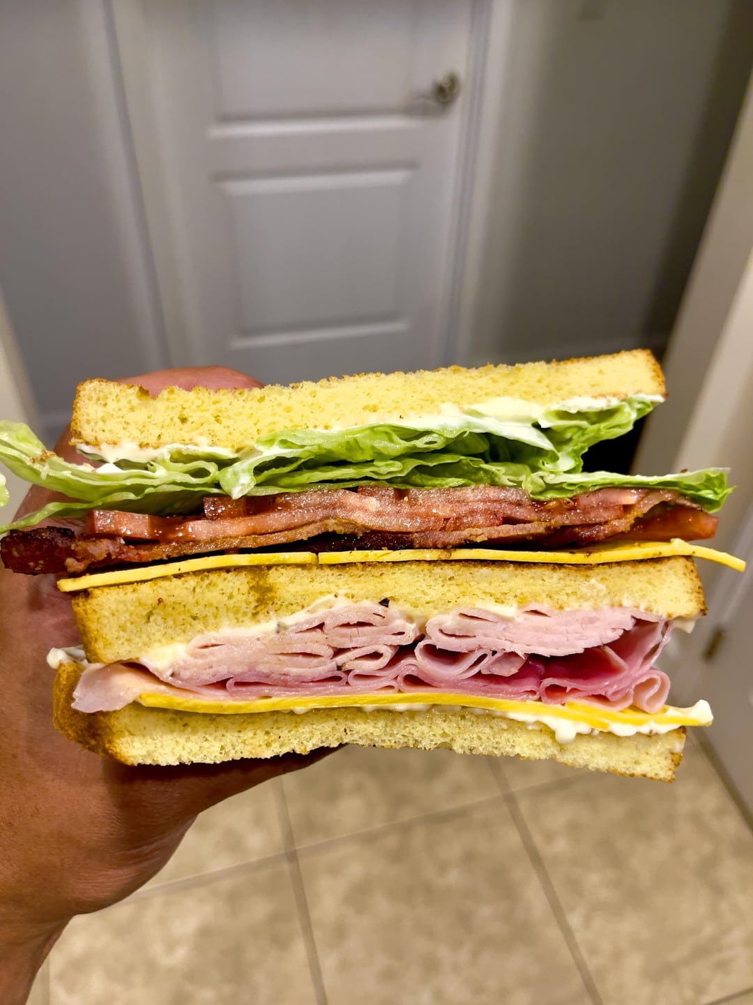 Honey baked Turkey, Ham and applewood bacon club on potato bread with Gouda and Dukes mayo by MrHaze100 4 Comments OriginalBookkeeper87 1 year ago Oh fuck yeah I’d love to get my chompers around that thing rick418tech 1 year ago Looks awesome but is the middle bread worth it! If it was gone I bet it would be even better!!! Just my opinion. verticalsidewall 1 year ago This second photo… the angled shot of the cut sandwich. Beautifully executed. The classics are classics for a reason. flipvine 1 year ago Only thing I would add is a tomato layer – shot number 3 is an ode to delicious tesselation and textureWrite A CommentYou must be logged in to post a comment.