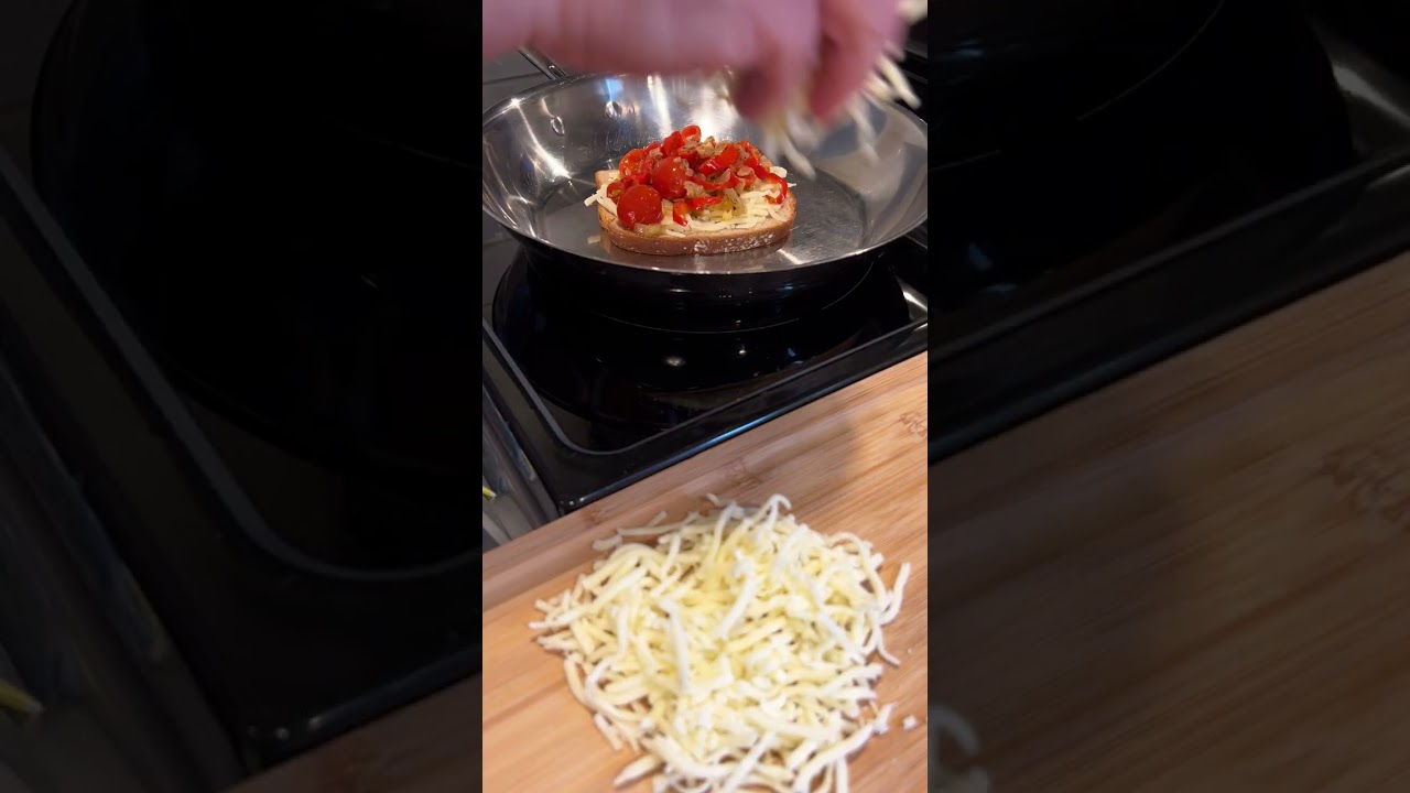 delicious mozzarella grilled cheese first chop some sweet red peppers and a small onion with your burner on medium saute them in a little bit of olive oil then throw in some cherry tomatoes season the mixture with salt pepper and garlic powder stir a few times and then set aside after cooking is complete next butter a piece of bread sprinkle oregano on top put it into a pan butter side down then top with some mozzarella cheese then add the cooked peppers onions and tomatoes sprinkle on a little more cheese butter another piece of bread sprinkle oregano on top place it on top of the sandwich turn the burner on medium cook side one until it’s browned and flip then Brown the other side serve with pesto as a dipping sauce enjoy