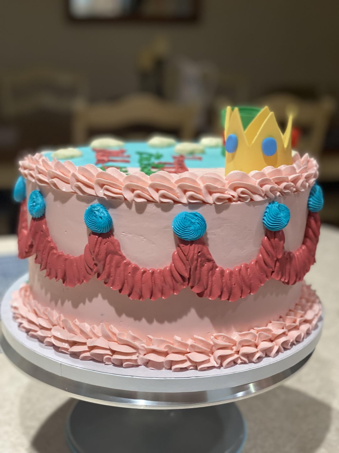 10” duel themed Mario and princess peach cakeby AshamedAd5172 1 Comment Automatic-Gap9121 2 years ago So cute!! Love the dual theme!Write A CommentYou must be logged in to post a comment.