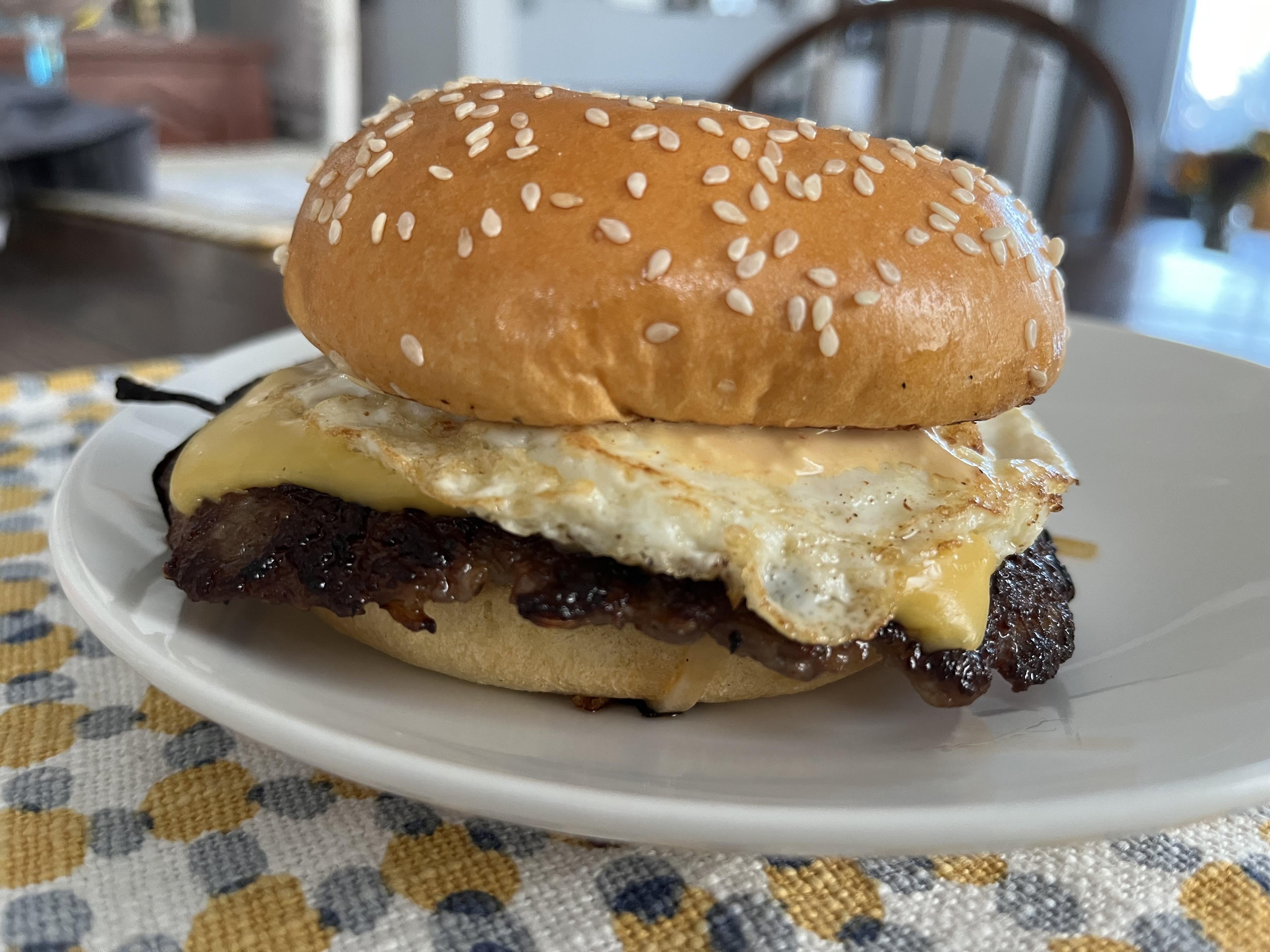 Smashed sausage, deli American, onion, special sauce and an egg on top by pinchematto Write A CommentYou must be logged in to post a comment.