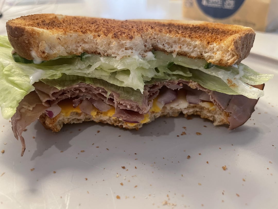 justcallmejohannes 1 year ago If you want a cross section, ya gotta cut it.Looking at half eaten sandwiches with a picture directly of the bite marks is not appetizing whatsoever.