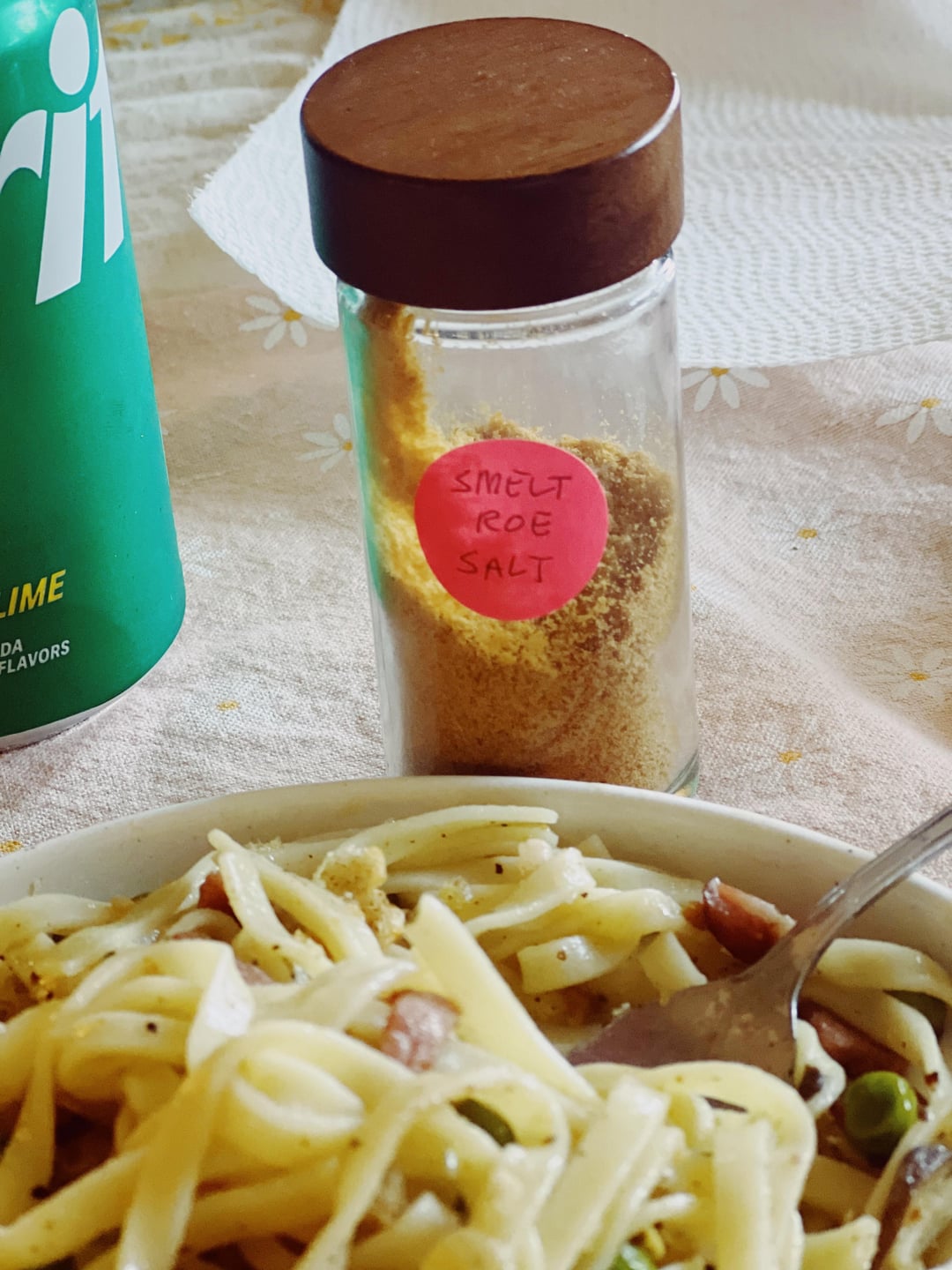 I didn’t want to add cheese so I made breadcrumbs to top it with. Added a light dusting of the smelt roe salt towards the end, very subtle.