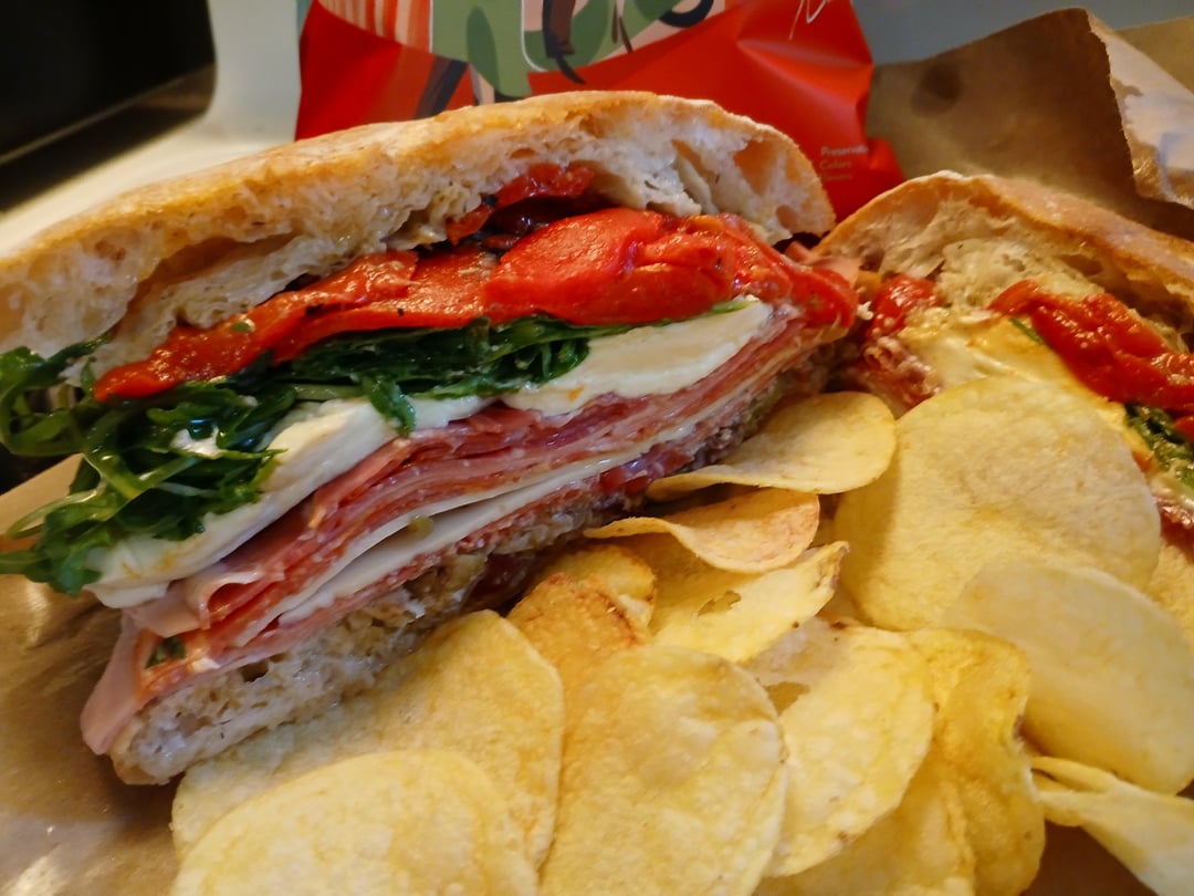 Thanks to my very best friend and ex-girlfriend but hey you know like we got this kind of Jerry and Owen relationship and it's real cool and she got me this huge fucking sandwich which was the best one I ever had for real there's like five different imported Meats on here I believe it was prosuta capicola sopressata mortadella a Heavenly balsamic vinegar glaze and some pickled red peppers like holy shit this thing was good. This was at two seating sandwich I could not finish the whole thing in one go! Bonus pick of my burger from the day after if you swipe