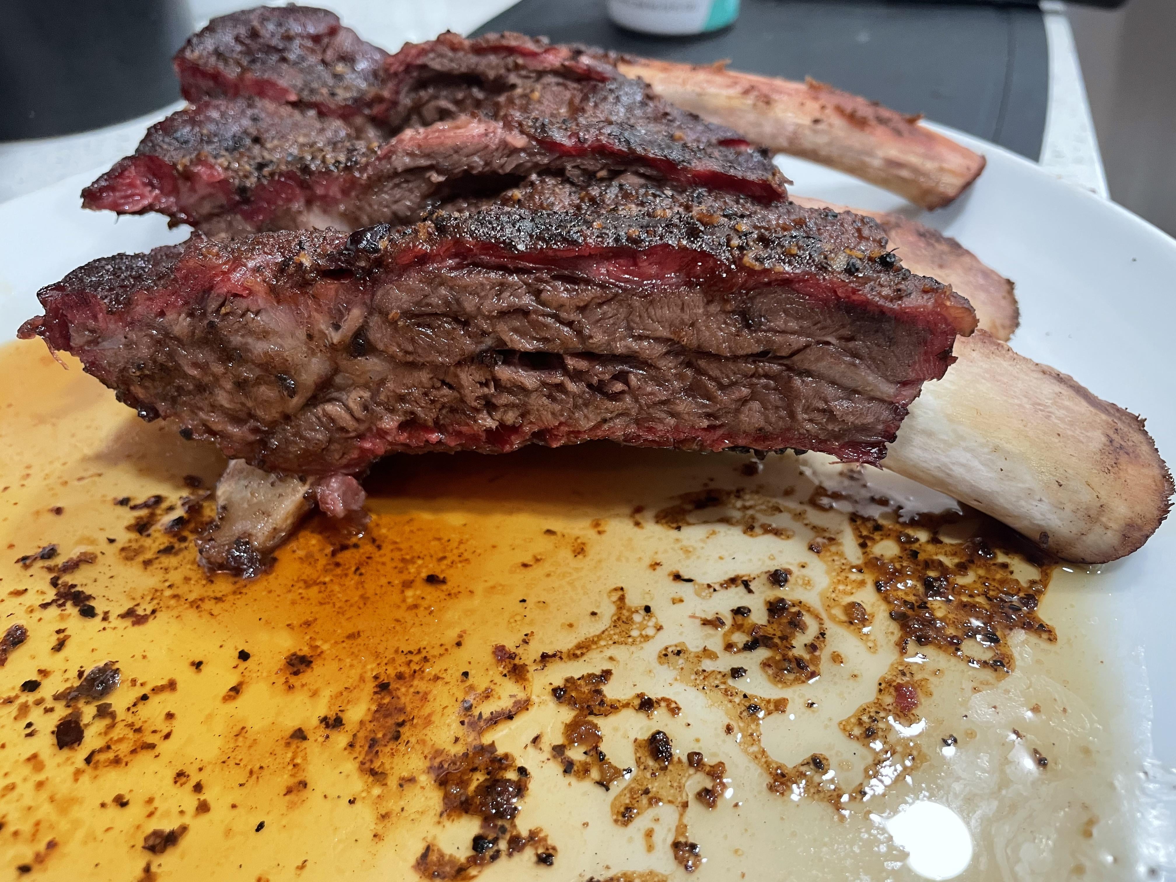 I rubbed these with SPG and a mustard binder, and then smoked at about 250F until they got twisted, then wrapped in foil until done. Probed about 208F when I pulled it. I didn’t time it, but maybe 3-ish hours total. I was following a video from u/glen-ausies-bbq.