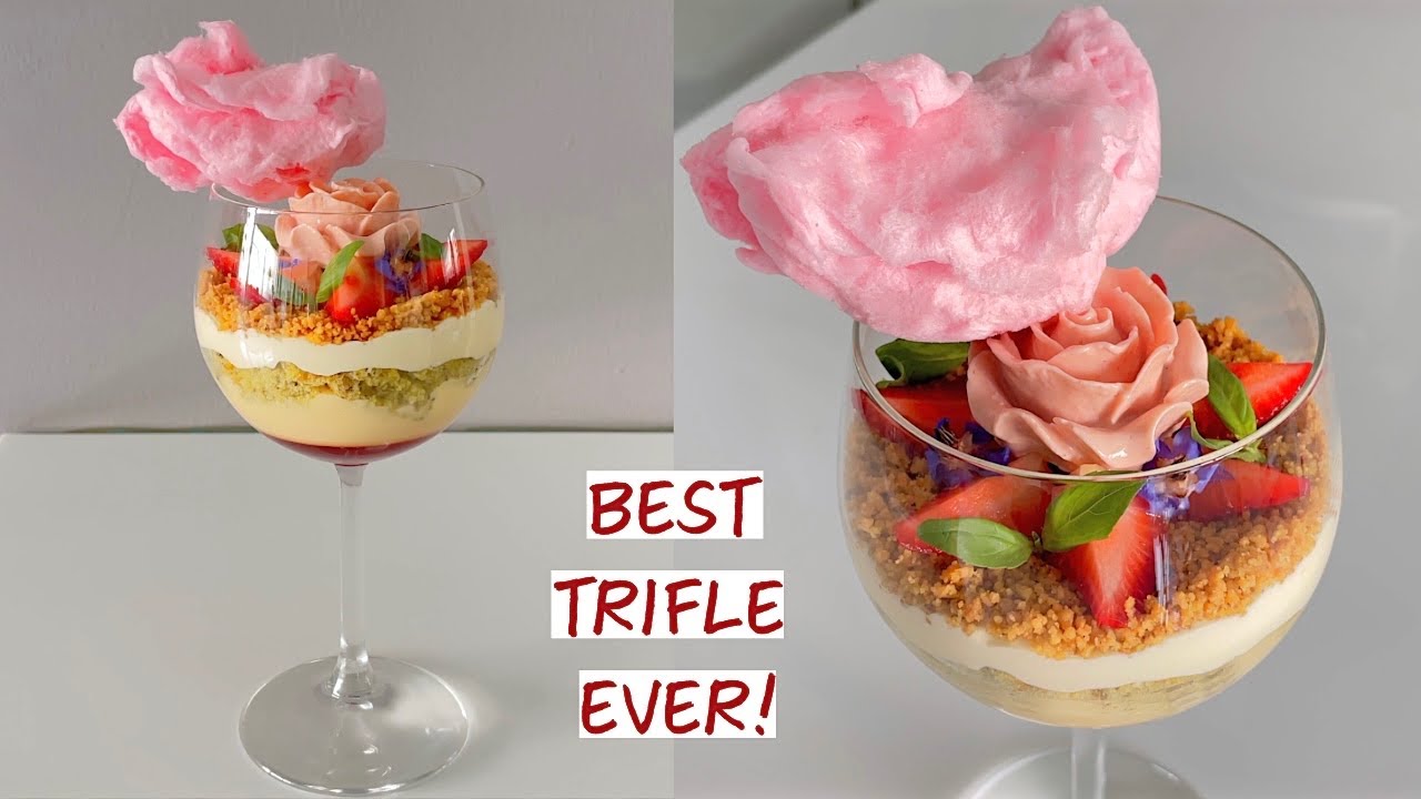 #strawberry #rose #pistachio #trifle #triflerecipe #rosewater #baking #pastry #dessertrecipe #plating #finedining #michelin #custard #whippedcream #spongecake