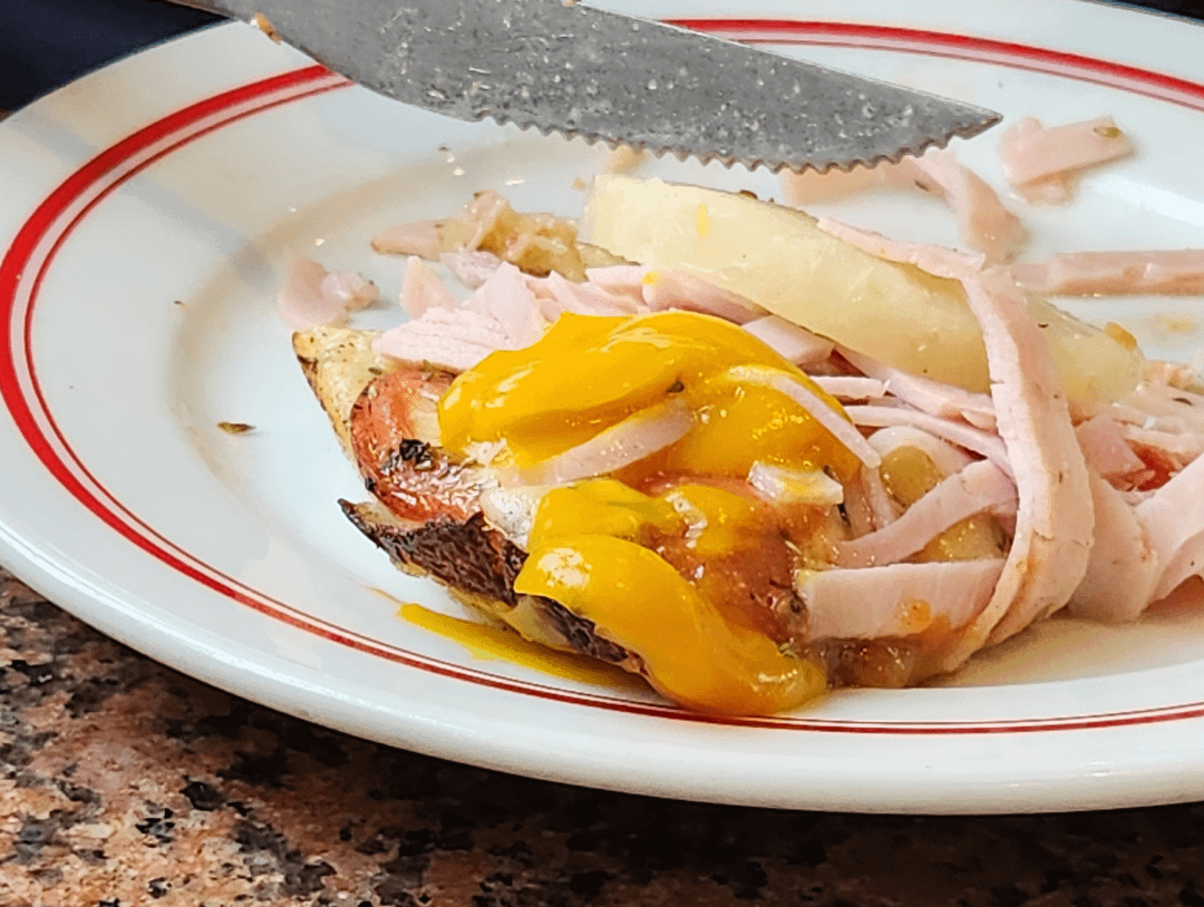 I’m more worried about the glossy gelatinous mustard than the confused pizza