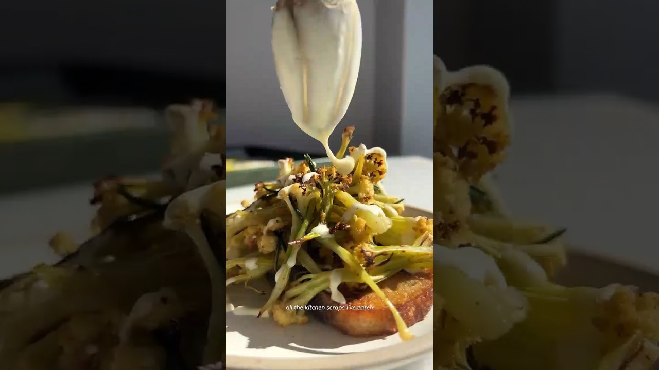 I’ve recently had the opportunity to be around a bunch of people who are just very passionate and very knowledgeable about food and I realized that like culinary school is great formal training is great but I always learn the most when I’m just cooking with people for example I learned you can melt anchovies into any fat of your choice from a girl when she was just hosting a dinner party I also learned from an ex-boyfriend’s roommate that the reason our food doesn’t taste as good as restaurant food is cuz we’re not using nearly enough butter I learned from a chef friend off duty to ditch your serrated knife and just use a sharp chef knife it’ll cut your bread better I like to think I learned from myself that using your hands to flip your bread is totally okay until you need your tongs I watched somebody fry Rosemary and they said as soon as you hear it stops sizzling that means the water’s out and it’s ready and perfectly crispy and I learned from more Netflix TV shows than I can count that lemon um acid always makes something better I guess we have some mosat to think for that and I’ve also learned from all the kitchen scraps I’ve eaten that if it’s an acceptable side dish it’s also an acceptable toast which fully makes it an acceptable feel