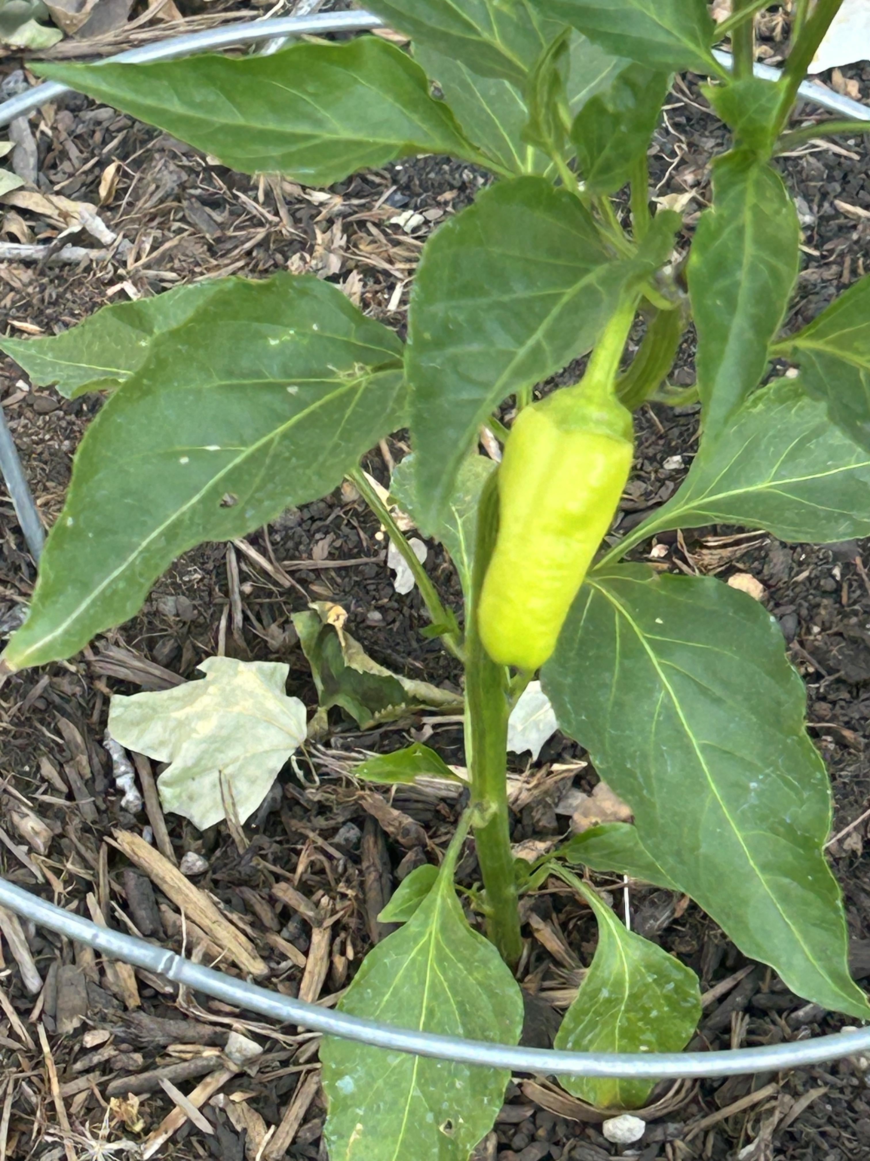 I originally planted a seed grow habanero in this spot, but the plant died, so I replaced it with a store-bought plant but lost the tag. by chillin1066 2 Comments fun4days365 1 year ago Pepperoncini? UntidyVenus 1 year ago Looks like a banana pepper or peppercinniWrite A CommentYou must be logged in to post a comment.