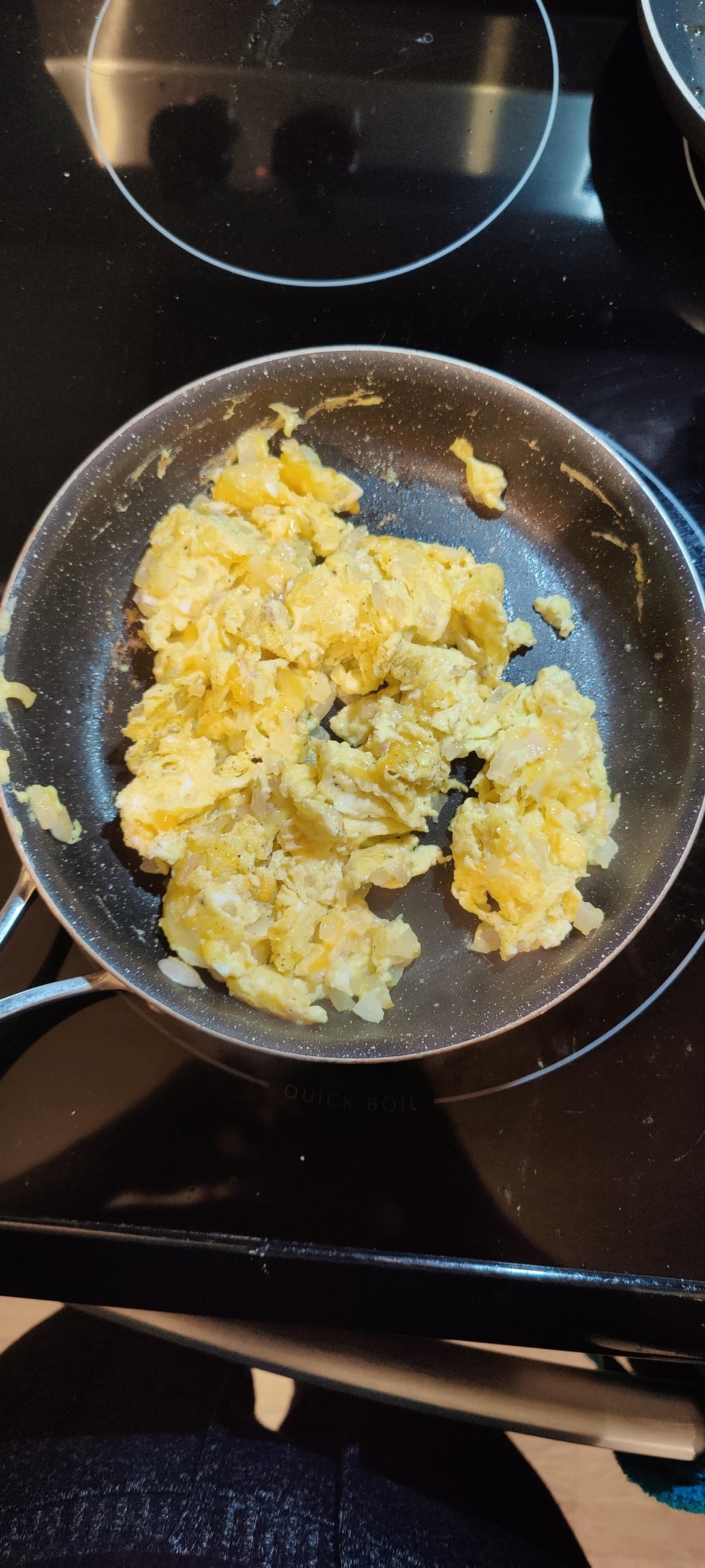 Husbands fav breakfast is onion eggs. I saute them, then add more fresh onion on top and don't cook it all the way, so It leaves a crunch. Then add your egg mixture, black pepper, salt, paprika ( a good amount too) and cheese. It literally tastes like oniony Mac n cheese eggs lol. Give it a try, I bet you'll love it 🙂