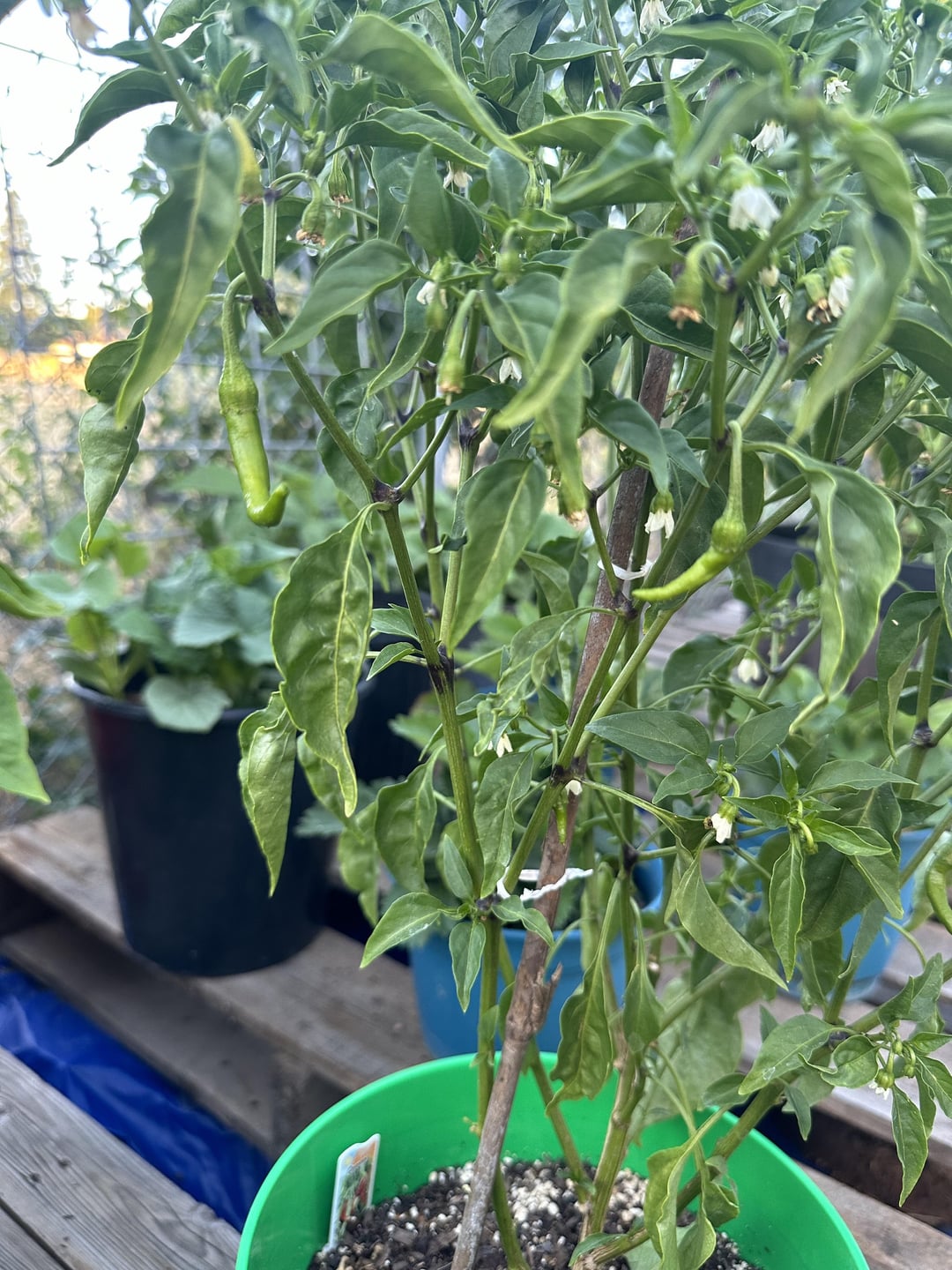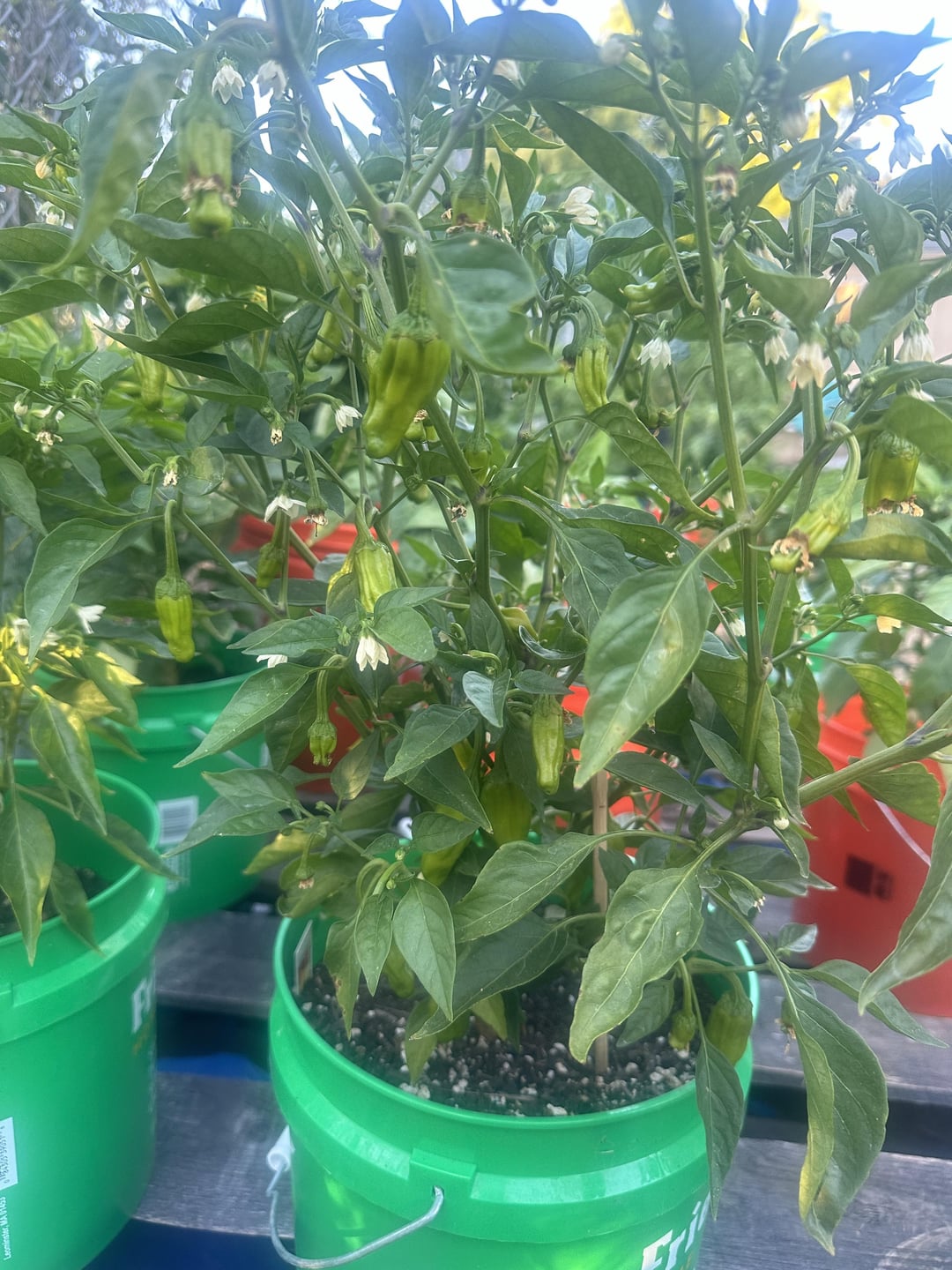 I have minimal space in my little backyard, and nobody to share peppers with, so everything is grown in 2 gallon buckets to keep them intentionally small.