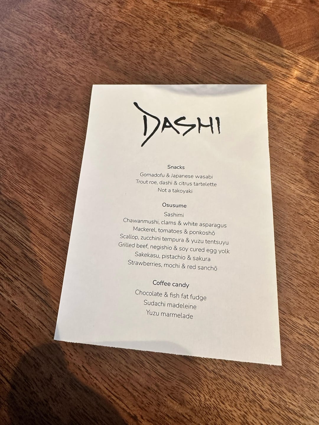 The highlights of the meal were the consistent creative uses of dashi throughout the menu, the seasonal mackerel and tomato dish, the richness of the umami main course and the two desserts which were both far above expectations (especially as someone who usually doesn’t love desserts). The toffee sweet at the end used fish scales from the previous dishes and was incredible.