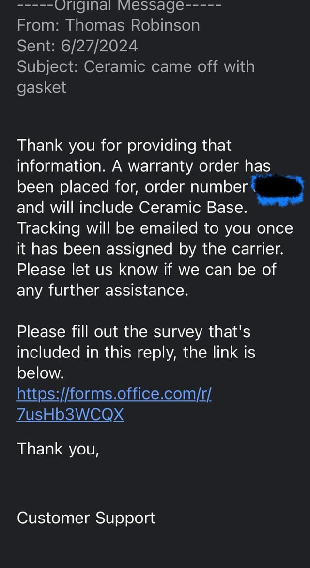 Customer service responded to my email after 3 days. New bottom on the way.by ThankfulReproach Write A CommentYou must be logged in to post a comment.