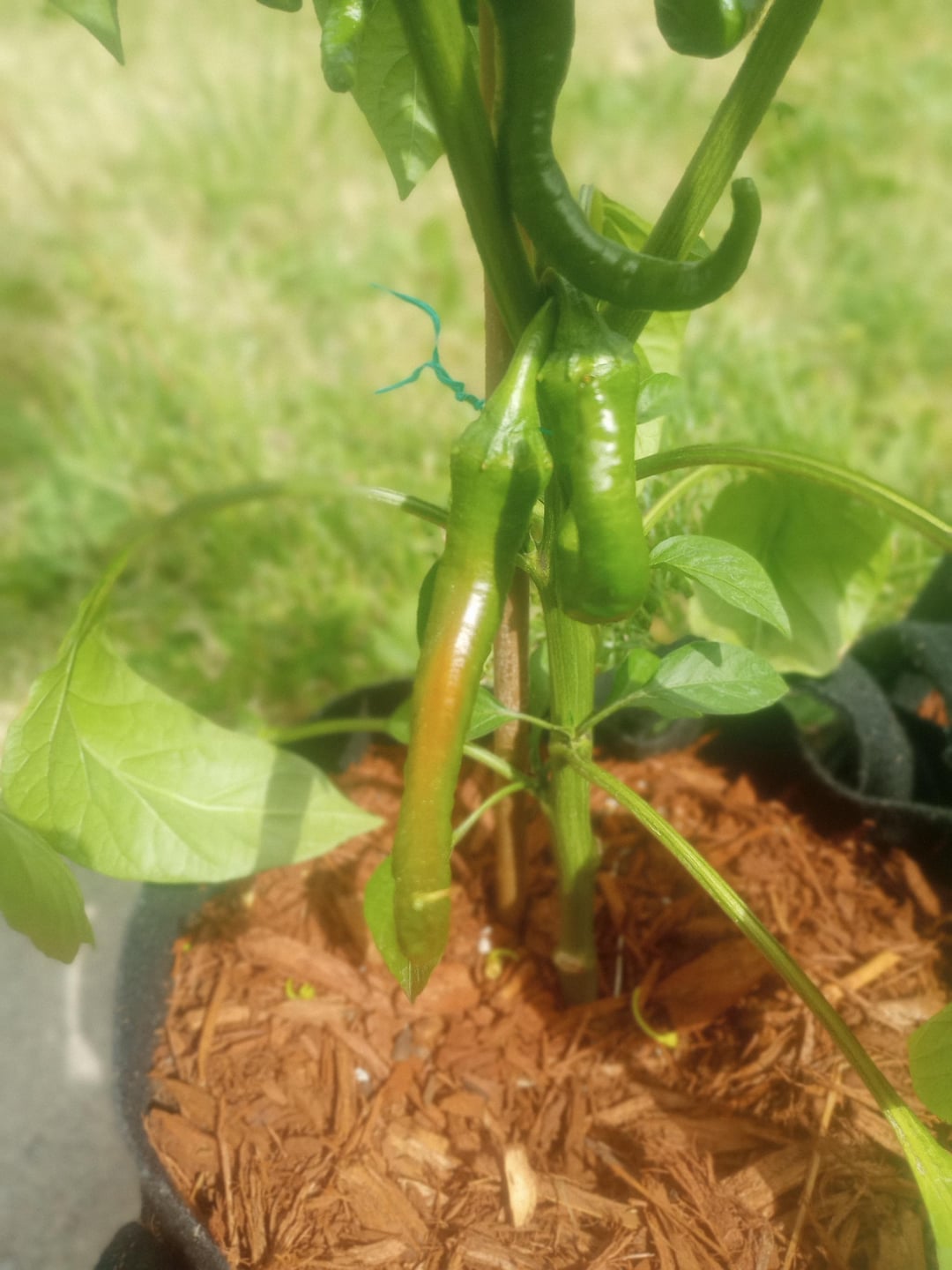 Portugal pepper 30k Scoville. 😊 First pepper of the season to start to turn red. Growing 24 varieties, 28 plants. Expect many more posts.