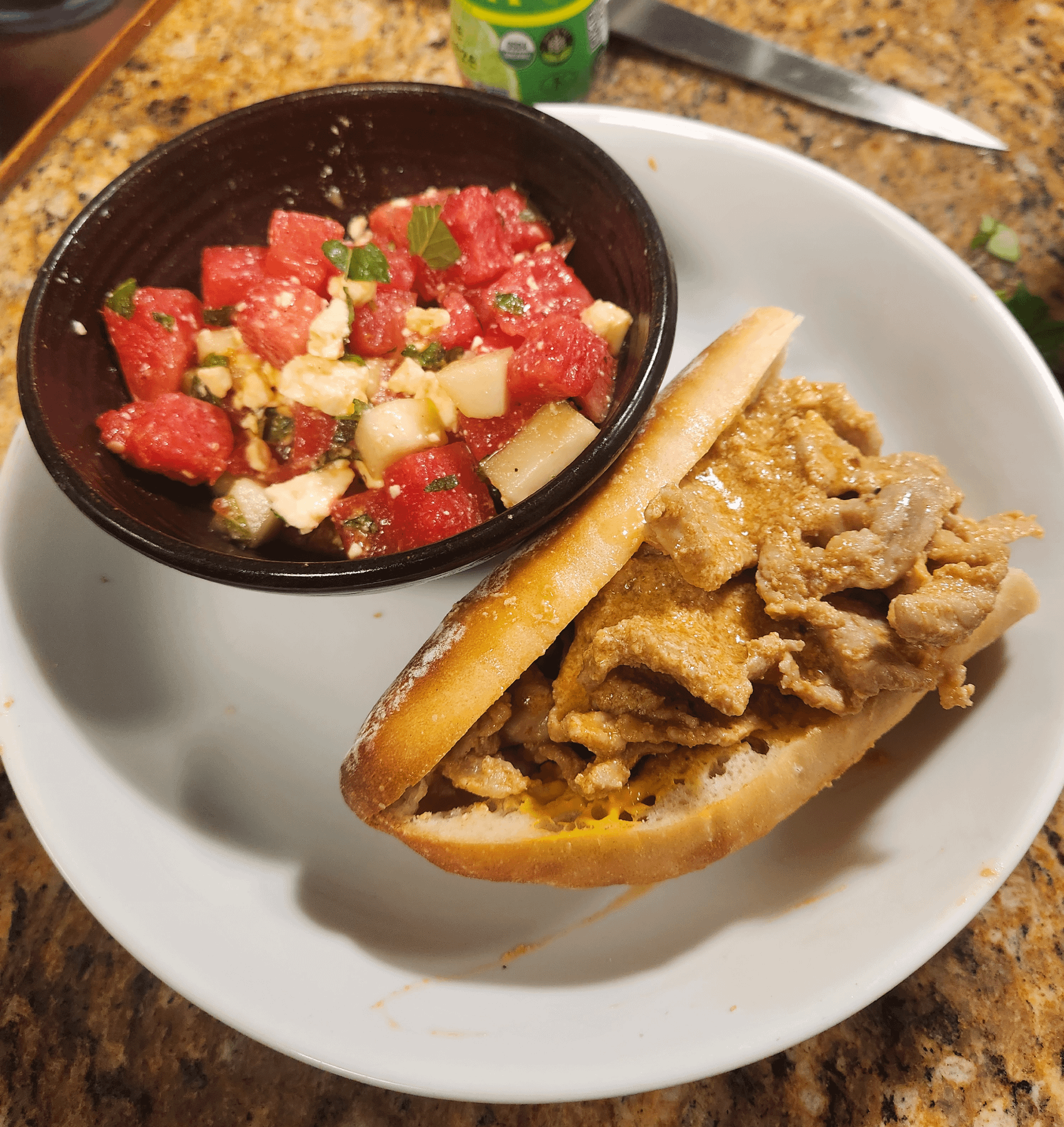 Lisbon style Bifana with cucumber watermelon salad.by mellofello808 4 Comments yParticle 1 year ago Ahhhh, Bafinada.*—Iselda* Zealousideal-Path292 1 year ago I keep thinking the meat is undercooked. Popular_Jicama_4620 1 year ago I’m an emprego man myself r_fernandes 1 year ago What kind of hot sauce are you using?Write A CommentYou must be logged in to post a comment.