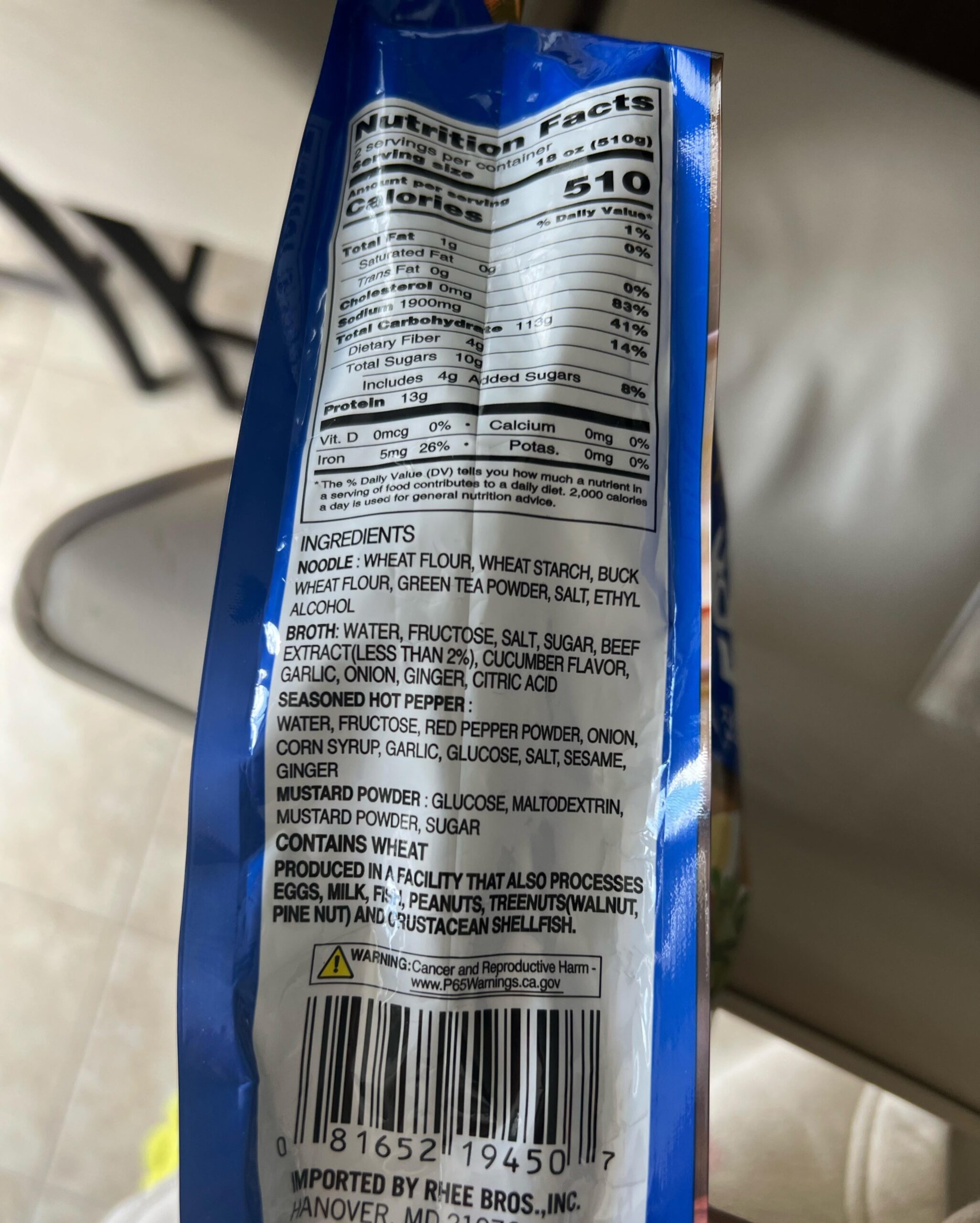 anyone know why this warning label would be any purchasable food package, especially naengmyeon?? the brand is yissine if that has to do with anything