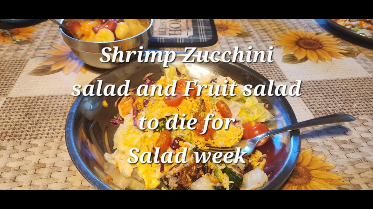 My fruit salad ❤️ I'm so excited!! Praying for Tom's friend 😢 I bet that shrimp and zucchini salad is awesome. Nice and colorful too. Blessings dear friend ❤