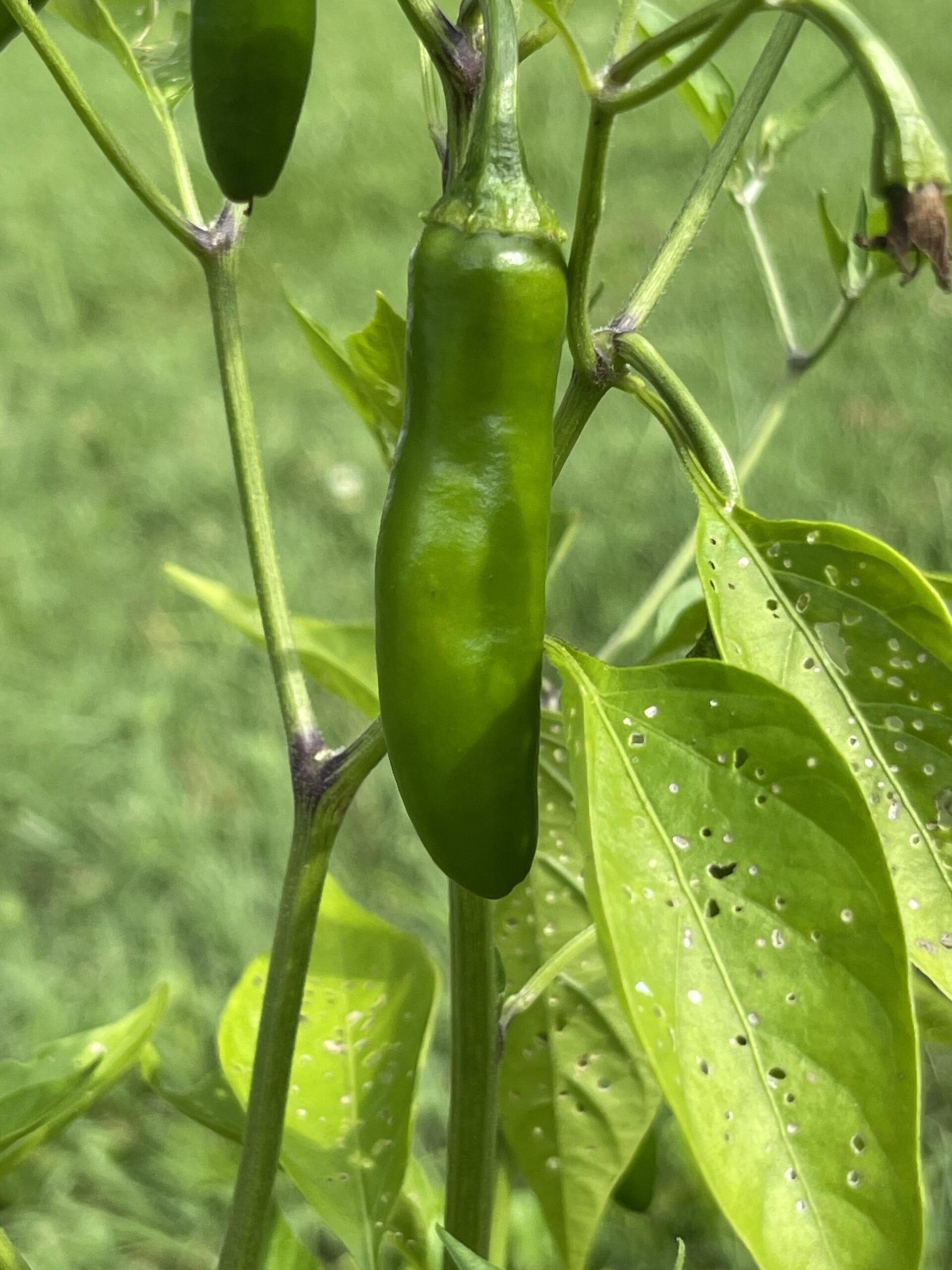 Only planted Thai chilis, and jalapeños in this initial batch. No idea what this is. The Thai chili seeds were from a plant I grew last year. Not all the Thai chilis look like this. ALL of the leaves have these small holes in them including new growth. And the peppers are these odd shapes I’ve never seen before.