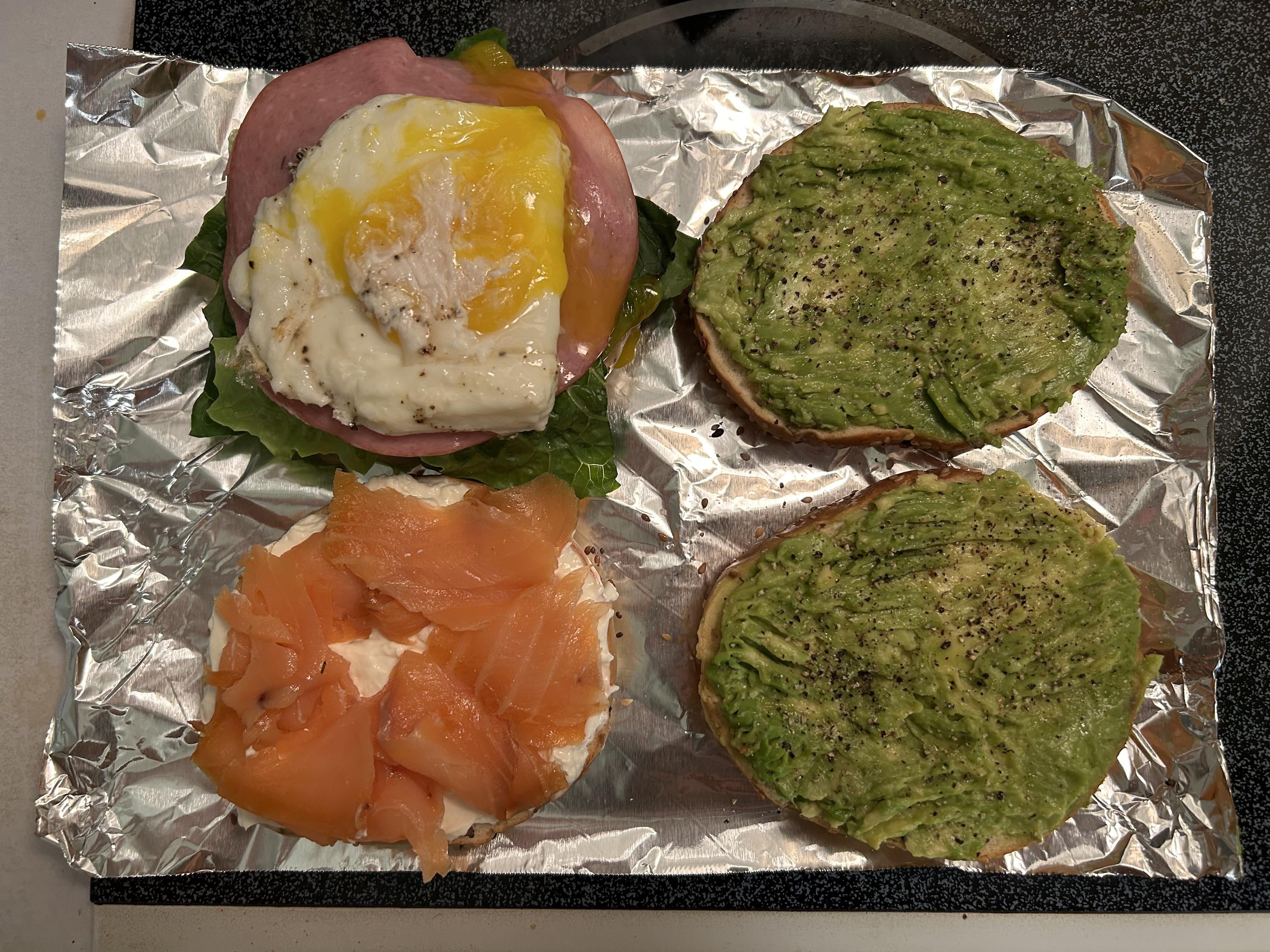 One had ham, lettuce, and a runny egg yolk; the other was a classic cream cheese with smoked salmon. And ofc avocado which I love on most sandwiches!! All put together & absolutely delish 🙂 by SpookyStarfruit Write A CommentYou must be logged in to post a comment.