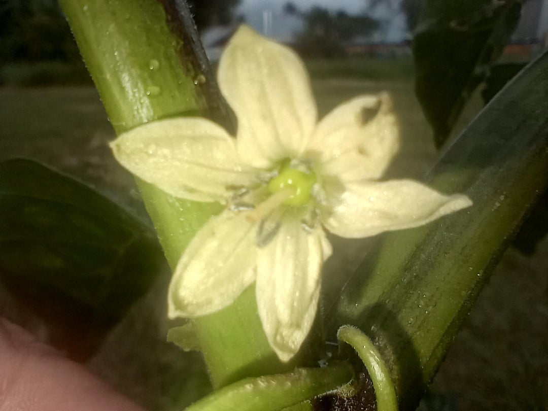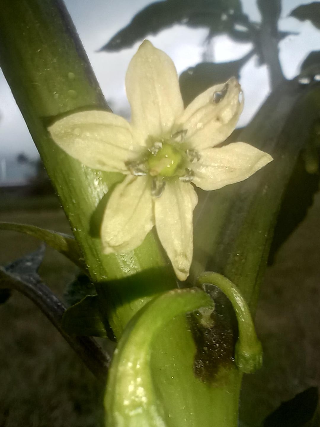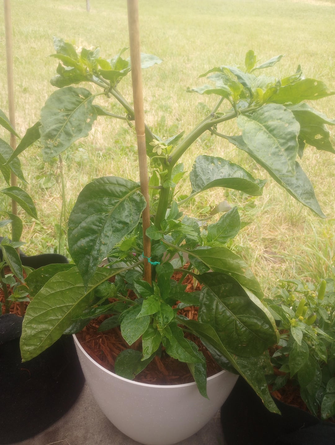 Growing 24 varieties, 28 plants. So far I have quite a few peppers that have already set fruit but this is my first super hot to do so. I like the first picture a bit better overall, but I also kept the second one because I feel like it shows the fruit setting a little better. Third picture is a view of the entire plant. Armageddon pepper average 1.3 million Scoville units 🔥🥵