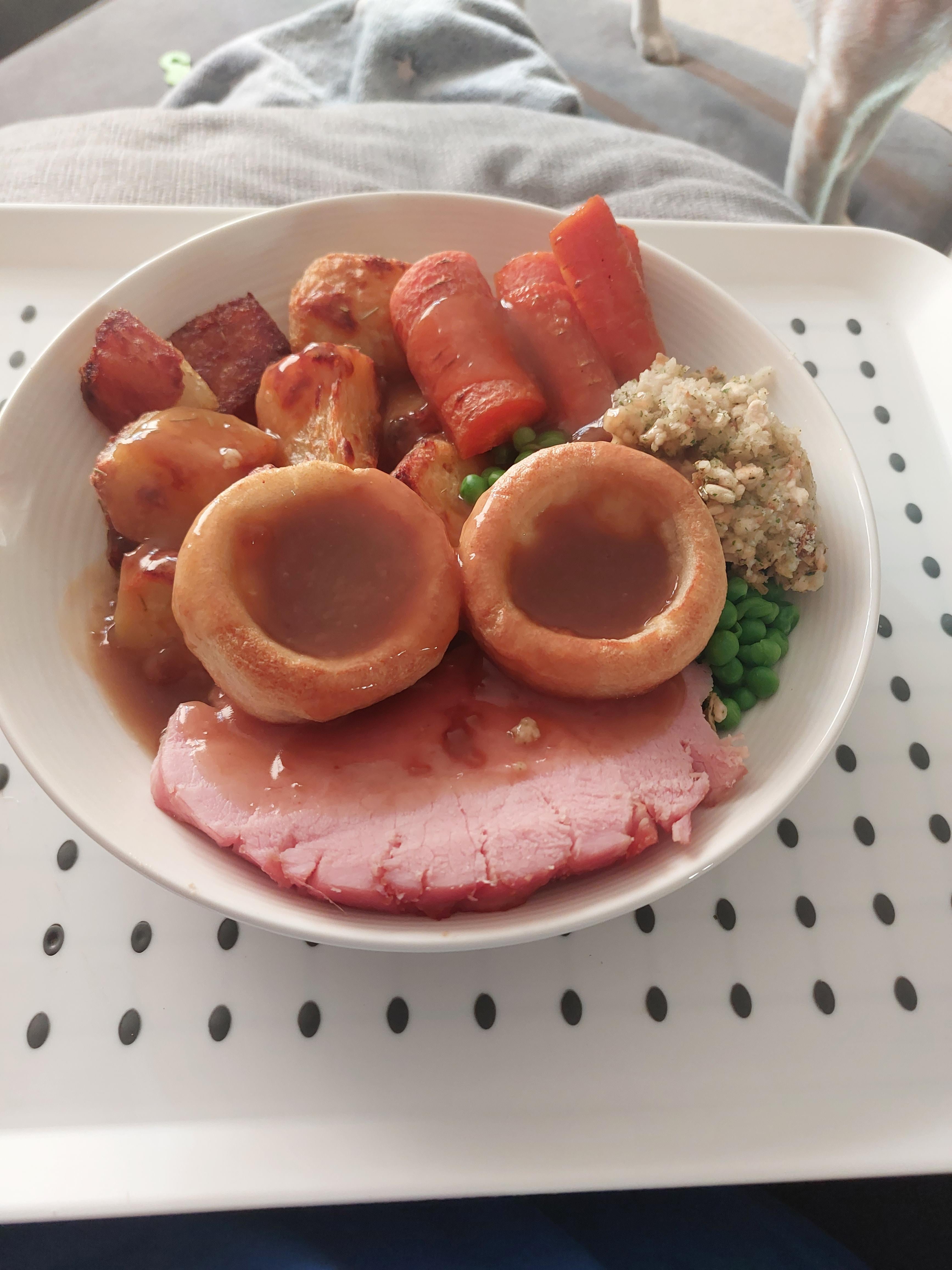 I have never seen gravy on Gammon before. Also I call dog tax.