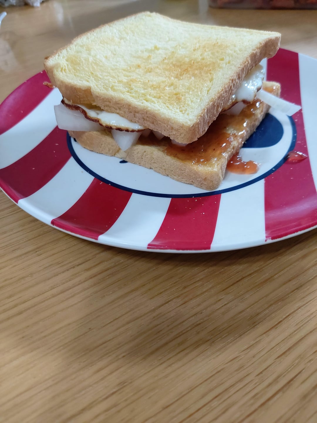 Was hungry, cut some onions and slapped it on a sandwich with some jam and an egg