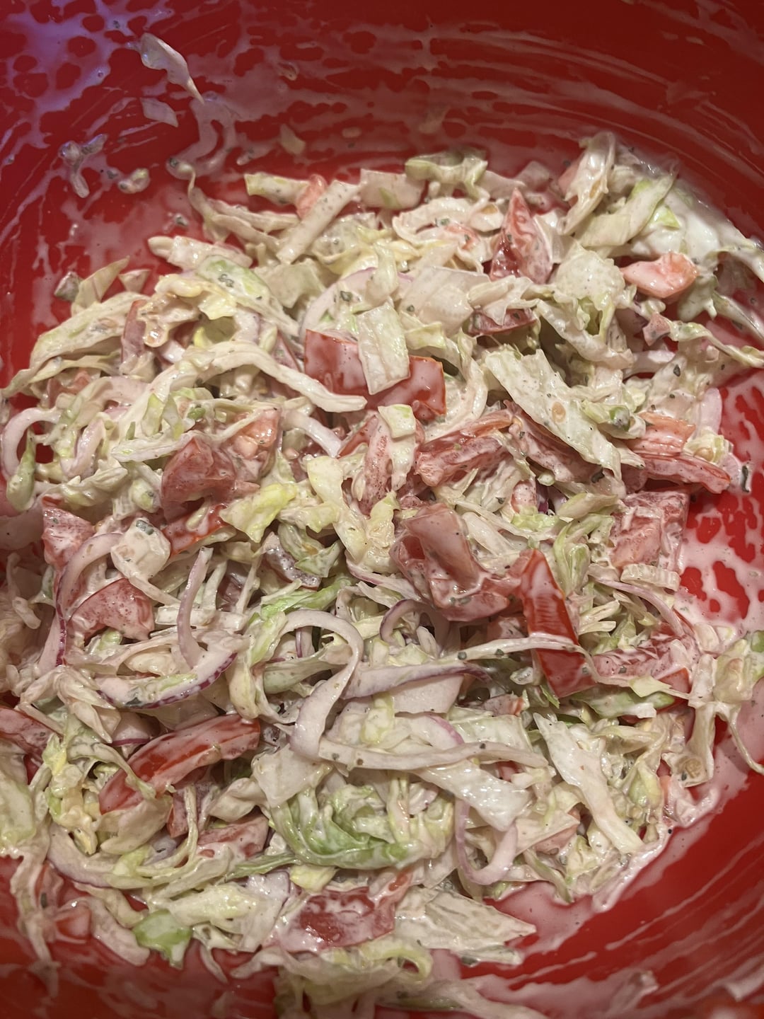 Fantastic! Don’t think I’ve ever heard anybody say they put a salad on a sandwich – but makes sense for good distribution of toppings!