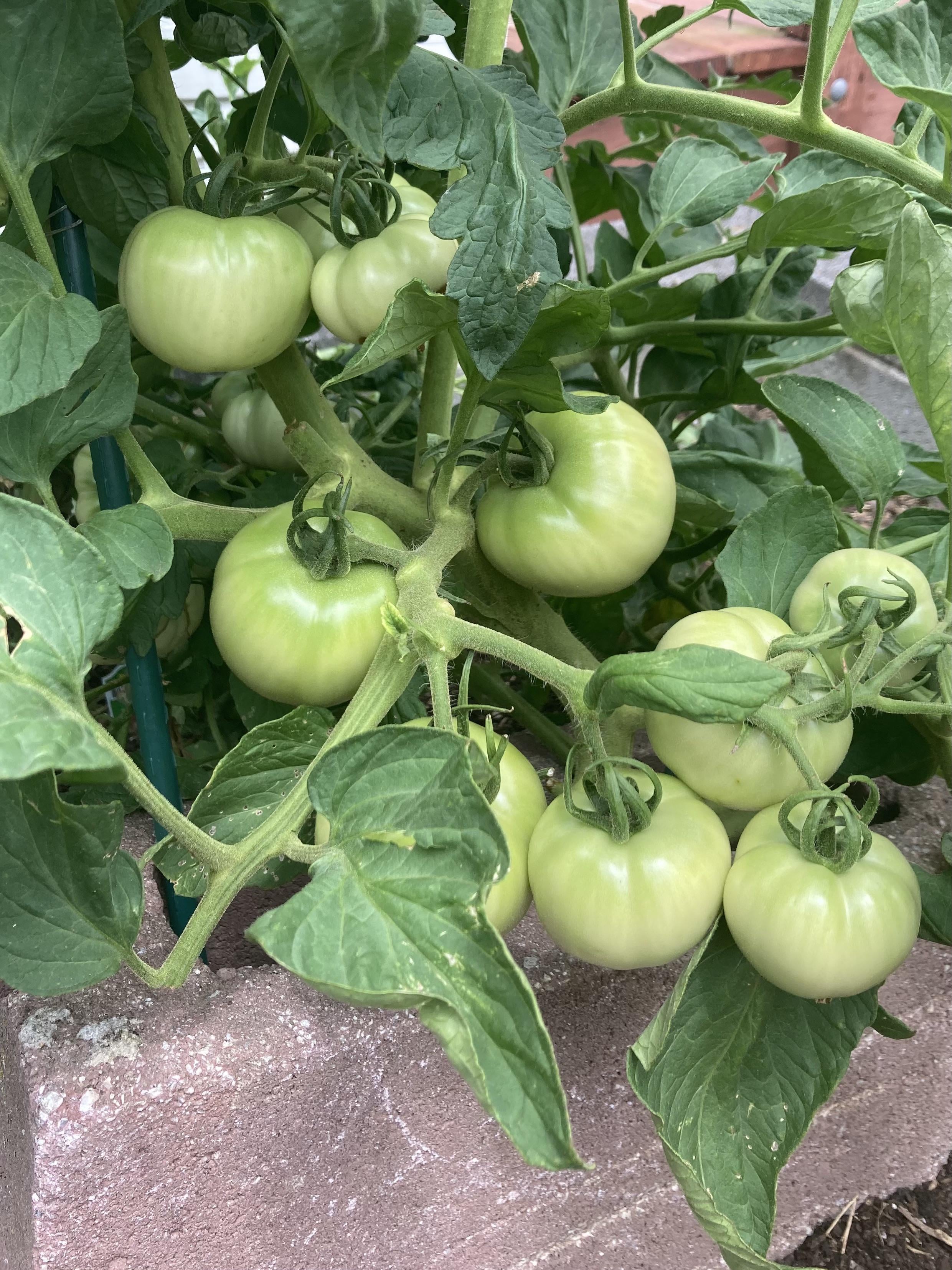 We are also in 7A and have 5 plants loaded with green tomatoes. Finally, in the last 24 hours, two of our Whoppers have started to turn red.