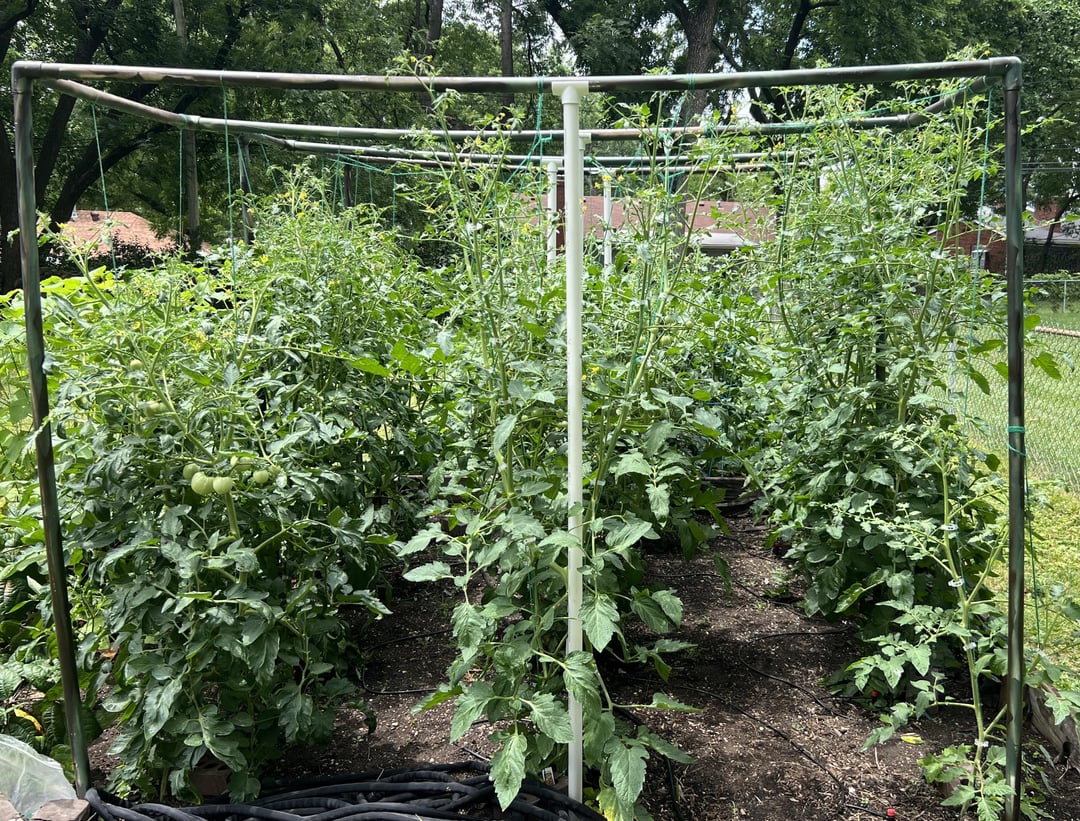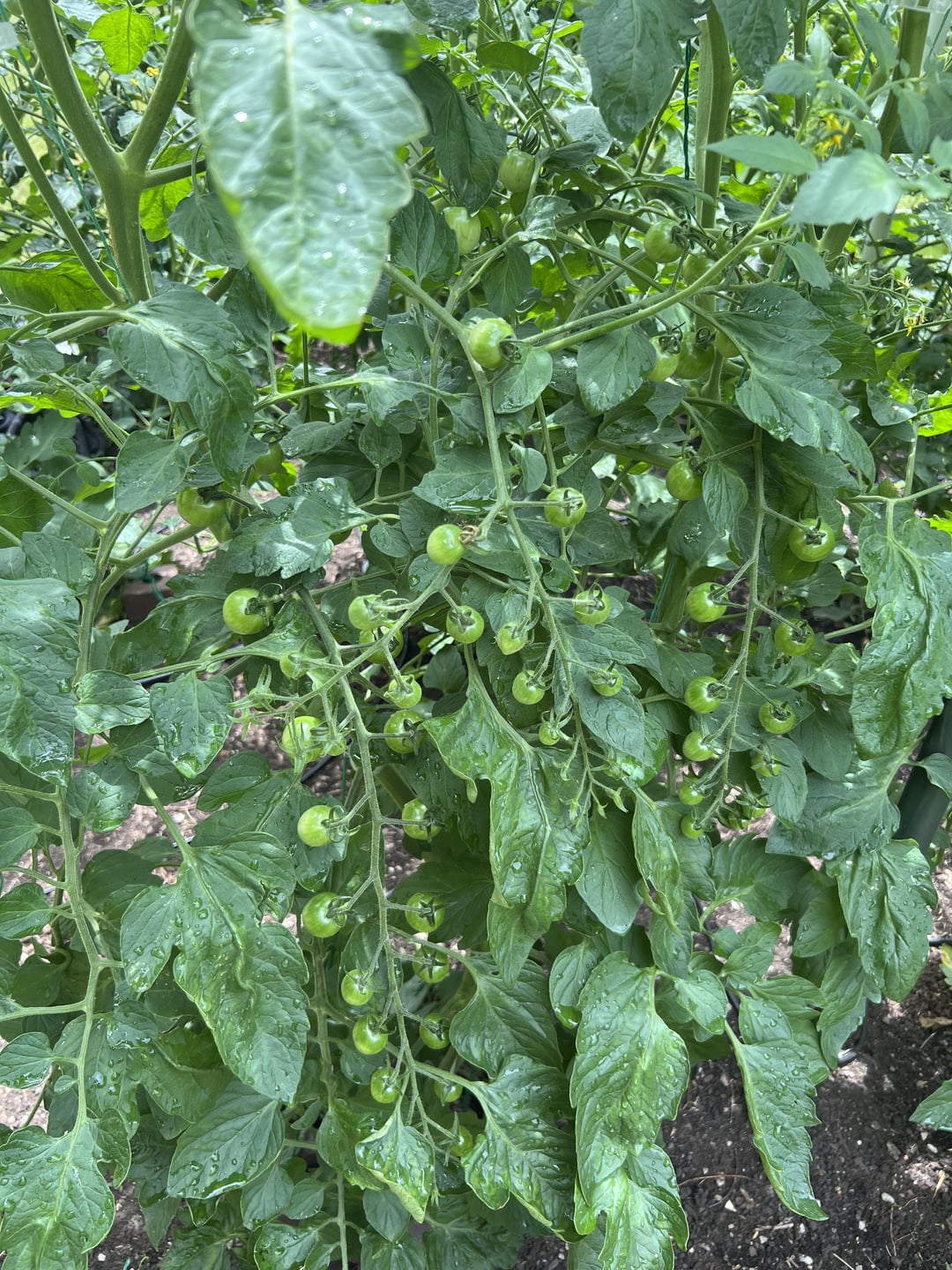 Some top leaves look a bit scraggly, likely still some jugalone damage, last year walnut roots got into my raised bed. This winter I dug it through and lined it with weed block cloth 8-12 in. deep but some small decaying roots are likely still present in the soil