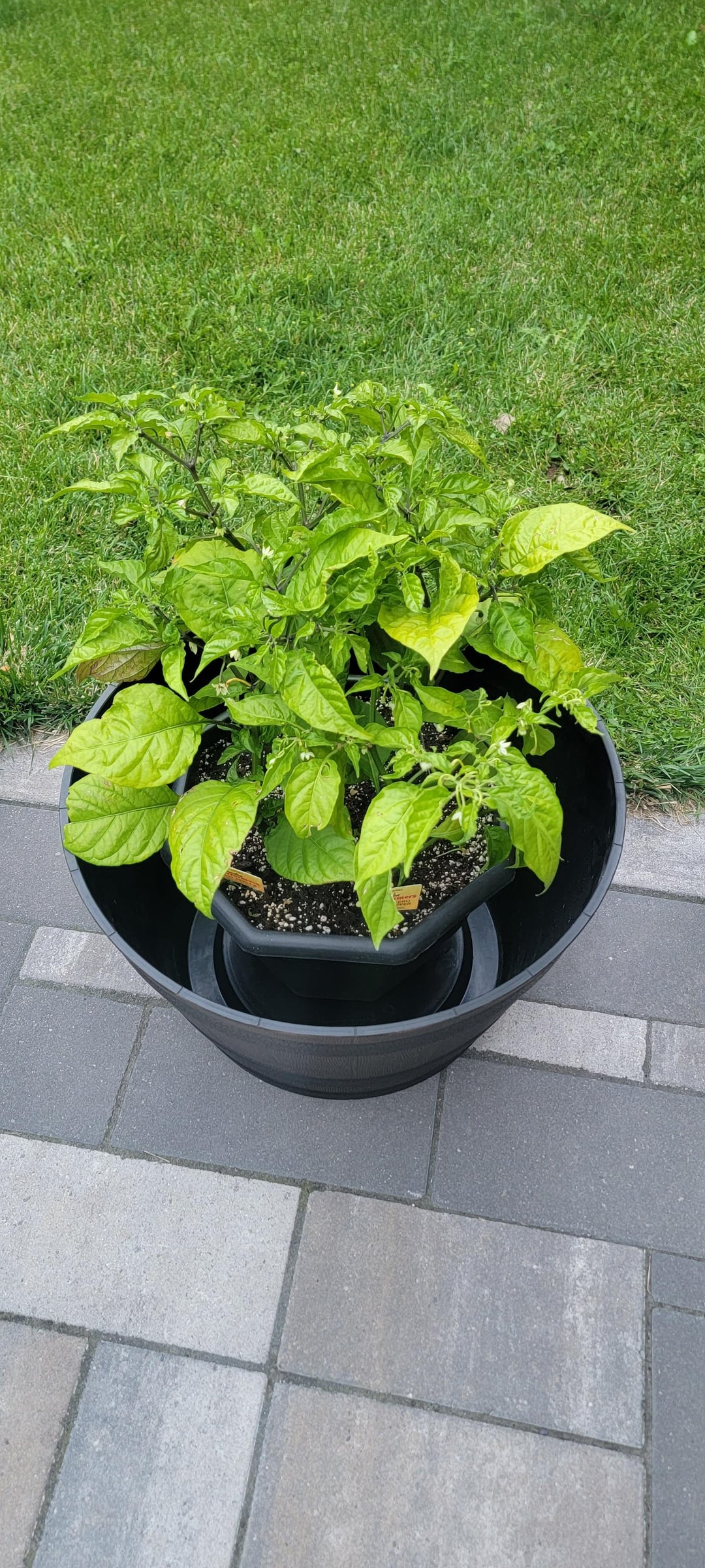 I was thinking of just up potting them in the container seen in the last photo. What is the best/least worst option here?