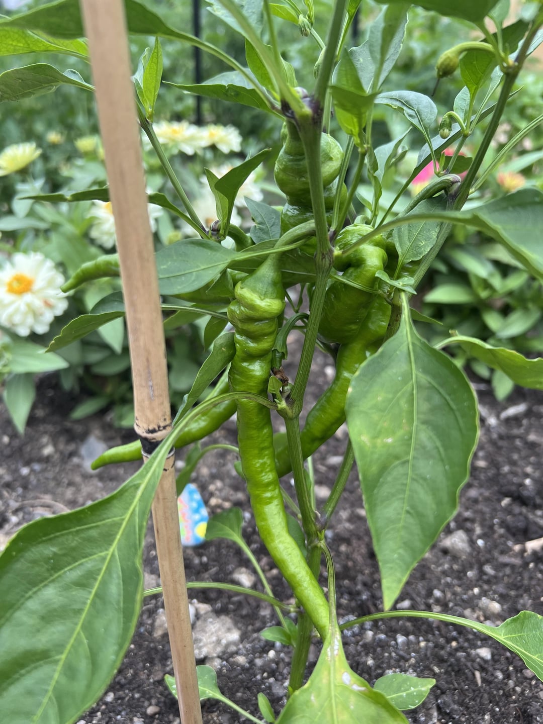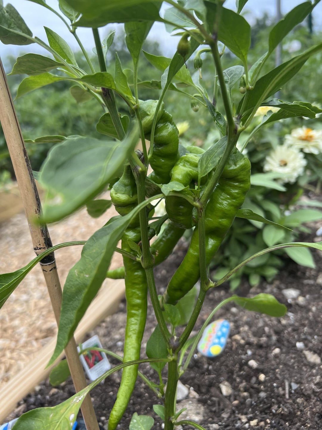 I have this jimmy nardello pepper that has only been in the ground for about a month… it has some pepper on it that are about 6 inches long I’d guess. Should I pick a few of them now so it’s not so crowded and the plant can grow more? Or should I just wait and let them turn red? Thanks!
