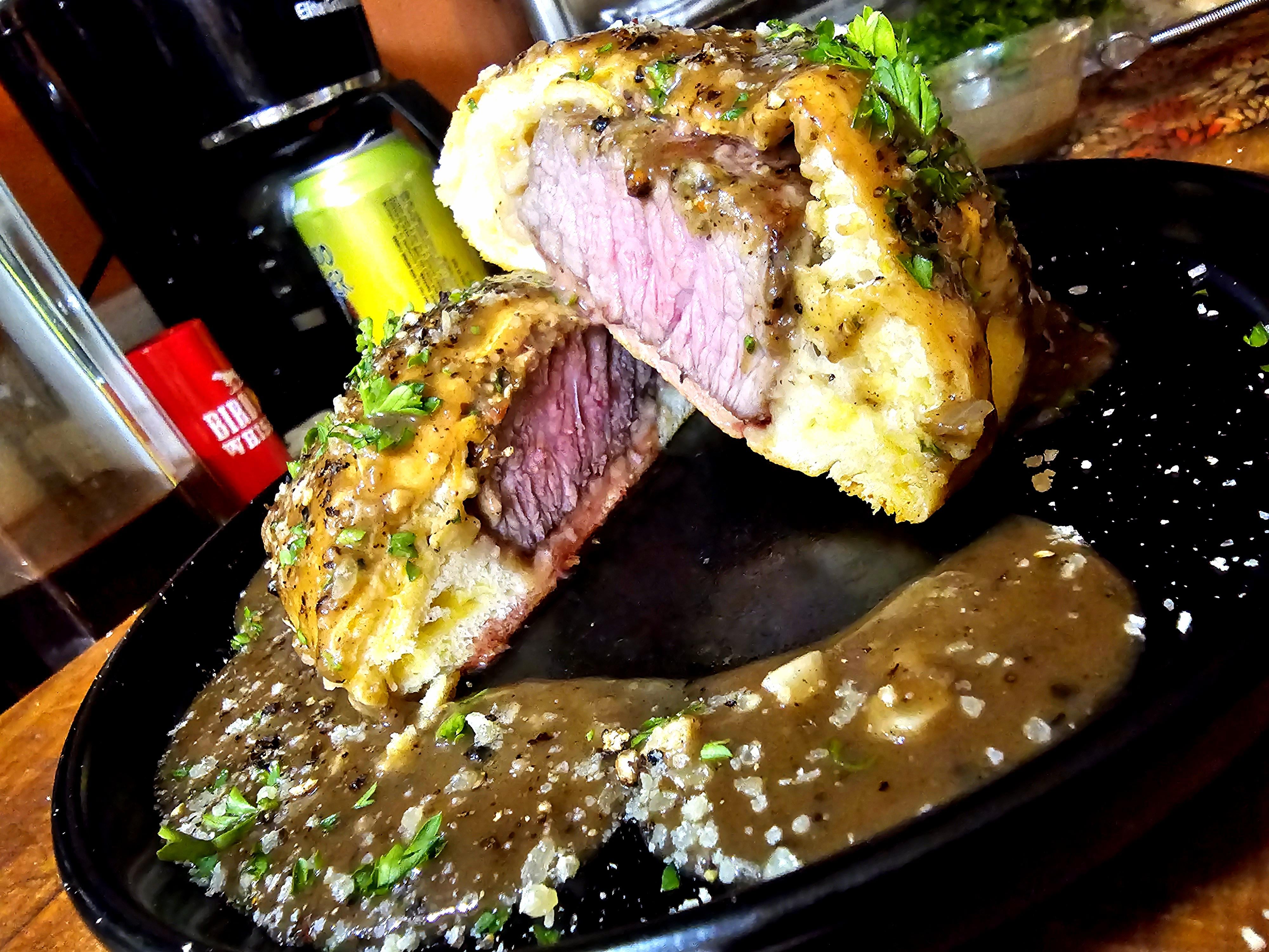 Remove from oven, pour gravy, sprinkle parsley and parm, s&p to taste.