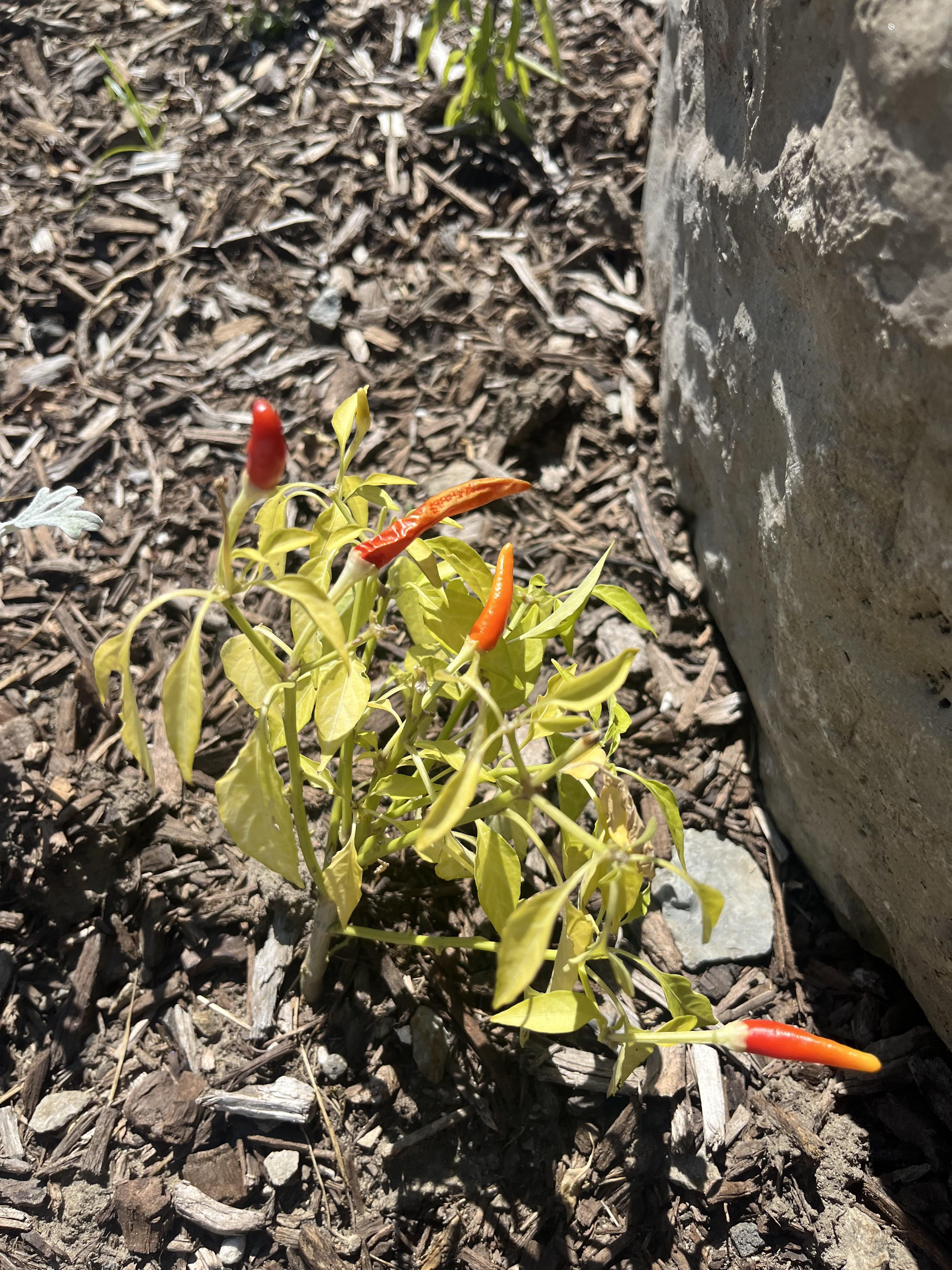 What is this ? Planted at a local city park down the street.by Dad_inthe_Glass_City 5 Comments Bowhunter2525 1 year ago Could be a very sick tabasco pepper plant. jimmy_MNSTR 1 year ago Looks too long for tabasco.Reminds me of Chile de arbol (the upwards growing ones). You can easily find them groceries in the U.S. dried in packages (and loose, depending)https://blog.amigofoods.com/wp-content/uploads/2022/07/growing-chile-de-arbol-peppers-1024×683.jpg Geck0Gecko 1 year ago Looks like fledgling Thai chili peppers to me. Magus_5 1 year ago Looks like a broken down Santaka Chili plant. Hot with around 40,000 SHUs. Crush one up and put it in an Asian inspired soup or stew.Edit: . Growing two of this exact plant indoors under a lamp and they produce like crazy. Einsteinautist 1 year ago Birds eye chili, they are delicious and hot!Write A CommentYou must be logged in to post a comment.