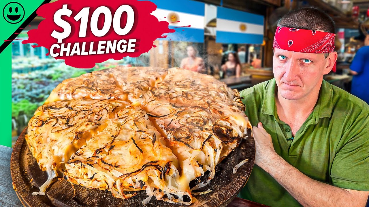 in this video we’ve come all the way to Buenos arys in Argentina to see if we can spend $100 on Argentinian street food but before that let’s back up a second buenos Iris it’s a huge City there’s over 15 million people here that’s almost unfathomable this place was colonized by the Spanish but heavily influenced by French architecture nice but what about Argentinian food Argentinian Cuisine is a vibrant and diverse blend of cultural influences primarily shaped by European and Indigenous Traditions So today we’re going to be exploring food and seeing if I can spend $100 let’s head to our first location now to start the day we’re having a staple breakfast item originating in Paraguay known as the Cheapo perfect for a cheapo like me when you break it open it has a certain kind of density to it it’s made using paresan infused tapioca flour m I would never guess that came from a starch it’s very doughy maybe eat it with a glass of milk it’s unbelievable I actually really like this if you have 25 cents to spare get the premium version with an extra glob of cheese in the center [Music] it’s cheesy it’s cheap it’s delicious now is this going to get us to $100 no but we have to start somewhere and this is an excellent place to start all right folks just a few steps away from Orica we have come here to this Market it’s called Marcado de sanmo roughly speaking here you’ll find a ton of different food stalls and restaurants that you can go to to try new Argentinian Classics that’s what we’re about to do now we’ve come to our first restaurant within this market is called yo you have this method this technique of cooking on this tool here this implementation is called a parisha parisha it’s essentially a grill with beautiful intensely hot charcoal this is all part of the barbecue nature of Argentina right now we’re starting with a cheese dish called provola this cheese is looking thick and delicious it’s got like even a skin on the outside this essentially an Argentinian provolone today we’re going to be having two versions and this is our right here we have roasted tomato onion garlic and olive oil and then right here we just have some beautiful caramelized onions he hits that with a little bit of onion and then that thick cheese two layers which is insane coming up next the Melt he’s going to make a little bit of a cast iron oven with each one that’s going to get nice and melty on top of the stove here this is grilled poeta it’s an essential element to any Argentinian barbecue party it’s a variation of provalone crafted specifically for grilling and bacon next he opens up the oven he takes both cast iron ovens and puts that inside an actual oven so those are going to stay in there for roughly 9 minutes and then we’re going to check on him we got a head knot I think it might be finished oh you can see the cheese is bubbling he took both Lids off quick rotation over to the counter this is oregano then some salao it looks a little bit like pic de hit it with a little bit of parsley wrap up the handles so you don’t burn your hands off and that my friends is finished I cannot wait to try this out I’m going to start with this one cuz I assume the Tomato one my might be slightly more delicious here’s the thing the chef says this is one of the softest types of provolone you can get and that it’s been matured on a wood slab for 6 months that’s how I matured as well it took longer than 6 months God dang oh my Lord oh my love wow you can taste the sweet caramelized onions then a mixture of the moisture from the onions and the oil from the cheese coming together the cheese is a wonderful combination of gooey in the center and then kind of hard and chewy on the rine here the edge that’s that one but what about this one right here of course the same beautiful melted cheese let’s try just the Tomato huh oh yes it tastes like a very sweet roasted tomato sauce and then I taste some garlic in there olive oil it tastes like a luxury version of Spaghetti O am I allowed to say that thank God the chef doesn’t know what I’m saying right now cuz he’s behind me planting no he’s filming right now we got a little tomato a lot of cheese some [Music] garlic wow it feel good Savory sweet tomato chewy cheese I could just leave right now I can consider this to be Argentina and I’ll be Satisfied this is about as indulgent as it gets but he has one more food here that is meat based we’re going to go back into the kitchen and try that next right now the owner is here proudly showing me his tho it’s a homemade baby no conservation no extra flavor never he’s taking the toizo and he’s putting that on top of the grill homemade baby oh it’s homemade so now after about 6 minutes he’s going to slice the sausage in half creating more surface area for that to cook even more oh hit it with a little bit of weight now it’s cooking from the top and the bottom this Porky sausage is a beloved Staple in Spanish and Latin American food it’s Rich Savory and a crucial ingredient in a ton of dishes from barbecues and Empanadas To hearty stews and sandwiches look at those grill marks that goes onto a dog bun this is the local Argentinian salsa and then this looks like chimmy Cherry sauce right here oh my Lord look at that that is Flavor hit it with a little bit of salt close the lid hit it with the toothpast throw that on this beautiful platter and that is ready for digestion Chef this looks beautiful this sausage was this made in a warehouse no where here homemade baby homemade baby that’s right homemade baby we have our second round right here $10 for this baby M oh my God so much flavor so may baby you can feel the snap of the sausage skin and inside it’s just a juicy Porky explosion that’s unreal the chimmy C makes it crazy Savory salty the salsa makes it a bit fresh it’s a wonderful combination this is our first market location but we have a lot m