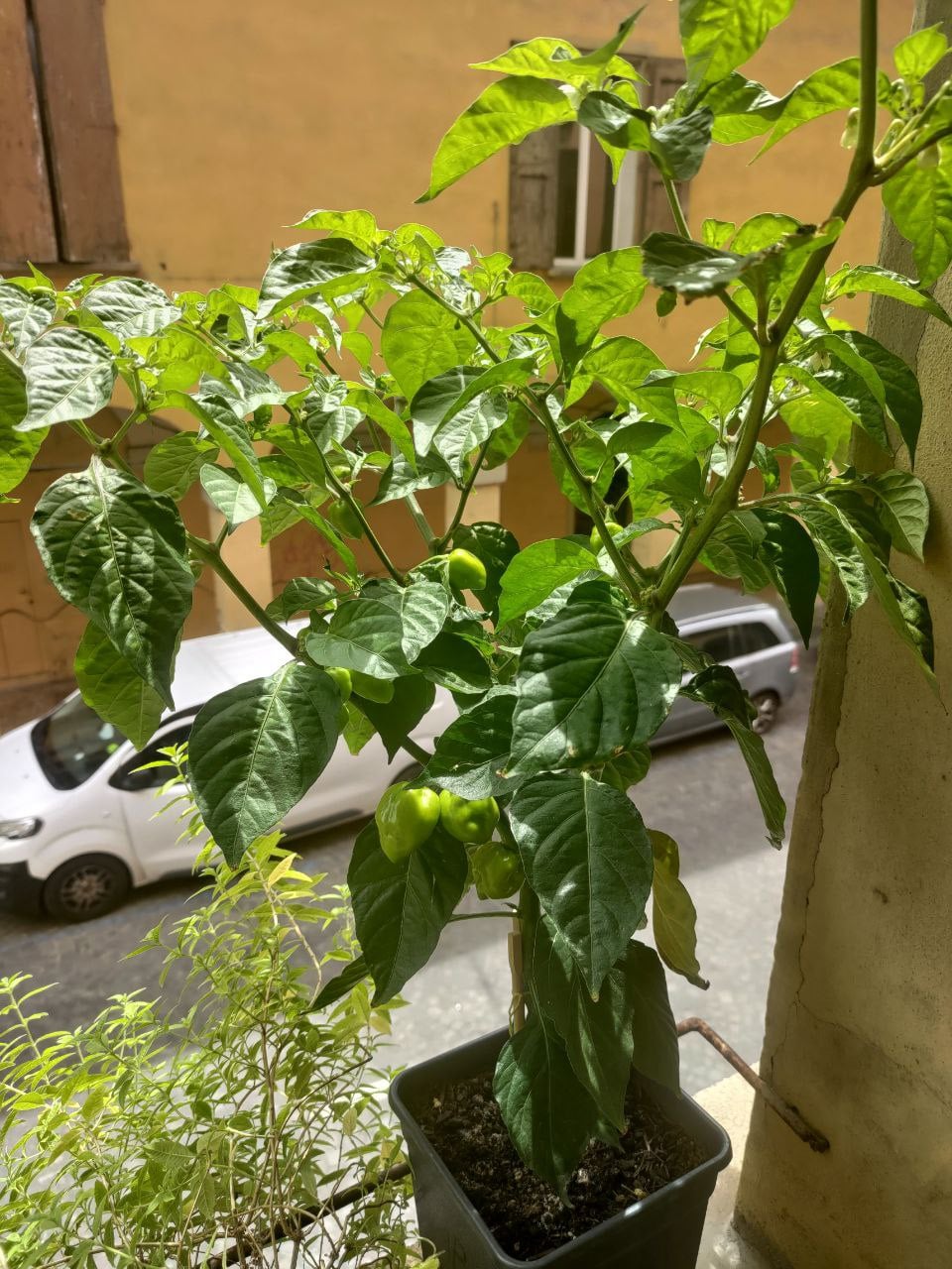 Right this morning I was admiring my Habanero (chocolate and red) and Carolina Reaper plants, the first ones I grew (not from seed, but they were very small), all of which turned out extremely well, despite being grown on a balcony, in small pots and having to endure wave after wave of aphids. I also tried the first ripe Haba Chocolate. Spicy and delicious. This afternoon I went out and in half an hour it went from unpleasantly sunny to hailstorm to just cloudy, and it hit hard. My plants aren’t dead, but they got hit hard and a lot of unripe chilis fell, as well with branches and leaves. We’re here to cry for the suffering the got, hope they’ll get better and still carry tasty and fiery peppers but mostly to find together a good way to use green habanero fruits in some recipes that will valorise them being unripe.