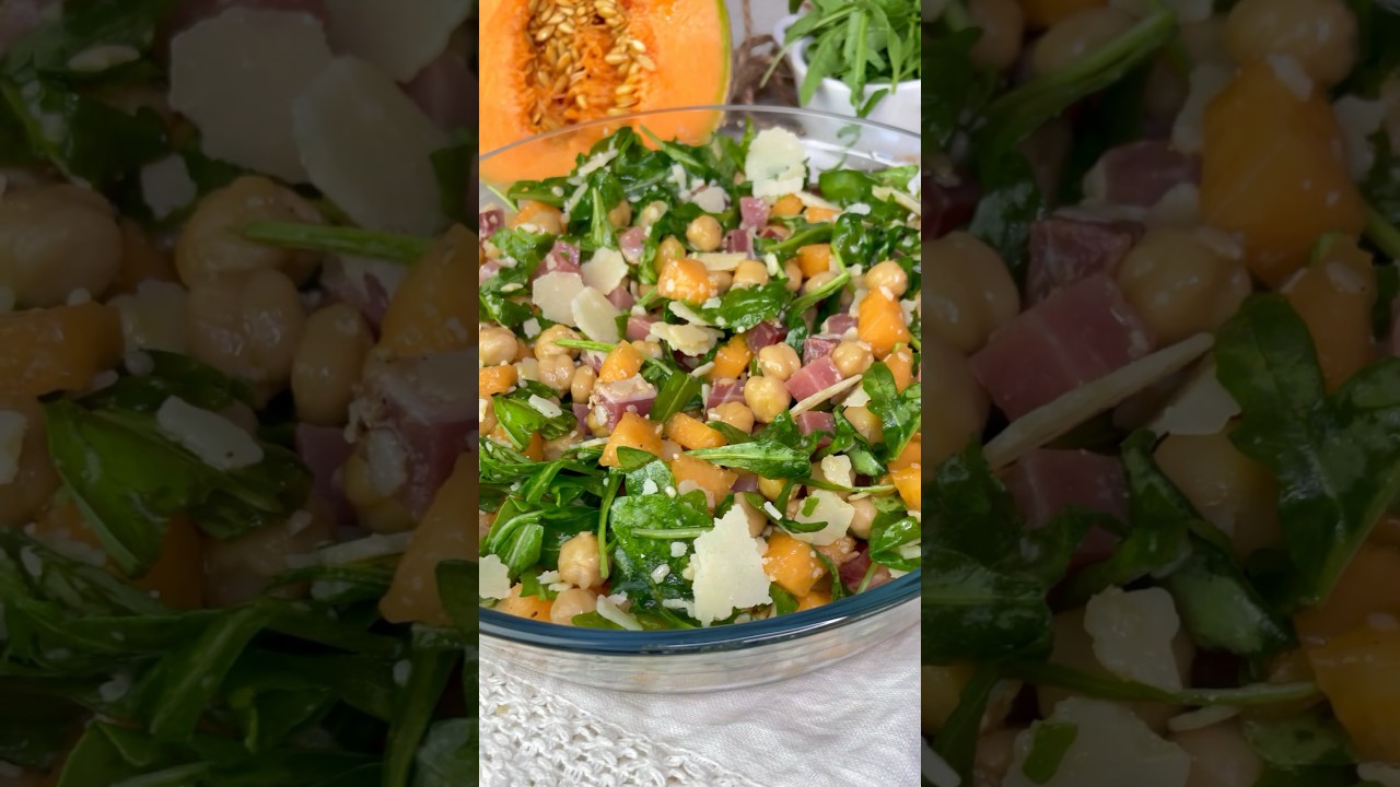 prosciutto melone sono una coppia perfetta e renderanno questa insalata di ceci strepitosa iniziamo a prendo il melone eliminando i semi la buccia E tagliamolo a piccoli pezzetti uniamoli Ceci ovviamente precotti e aggiungiamo il prosciutto crudo tagliato a piccoli dadini e poi una pioggia di scali di grana o di parmigiano Sale e Pepe uniamo olio e un po’ di aceto balsamico e condiamo l’insalata di ceci ed infine abbondante basilico e una manciata di lucola spezzettata con le mani diamo un’altra mescolata per amalgamare tutti gli ingredienti e l’insalata di ceci prosciutto e melone è pronta fresca golosa saporita profumata preparatela perché sarà subito e vedi che ti mangi