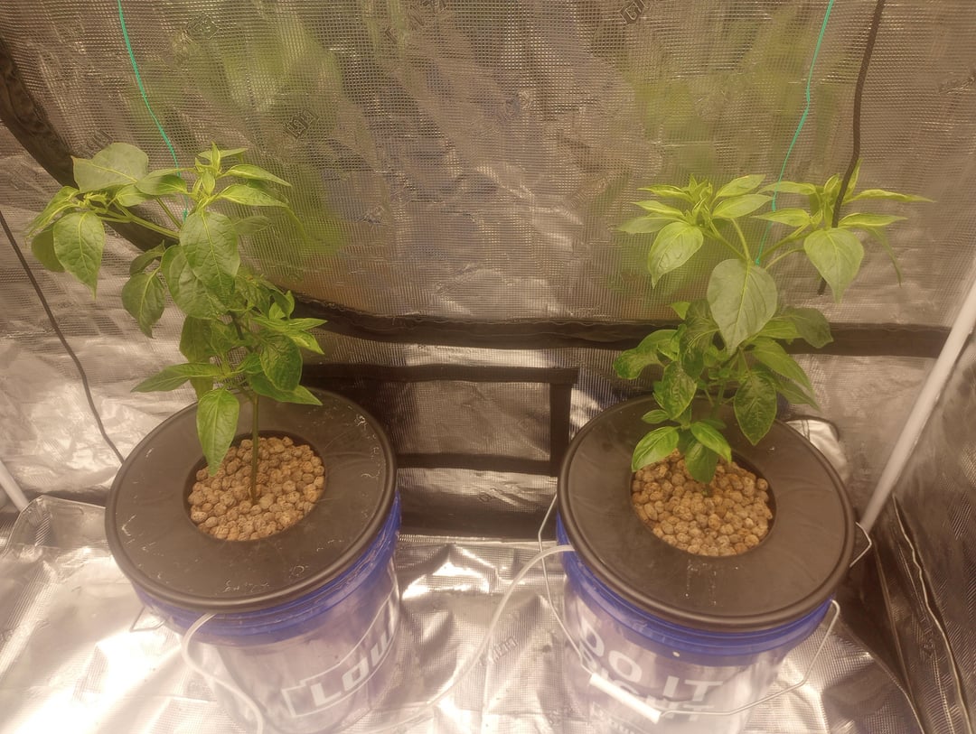 Picked up these aji limo plants at the nursery one 4 inch pot turned out to contain two of them so I decided to bring them home and carefully separate them and put them in DWC buckets.