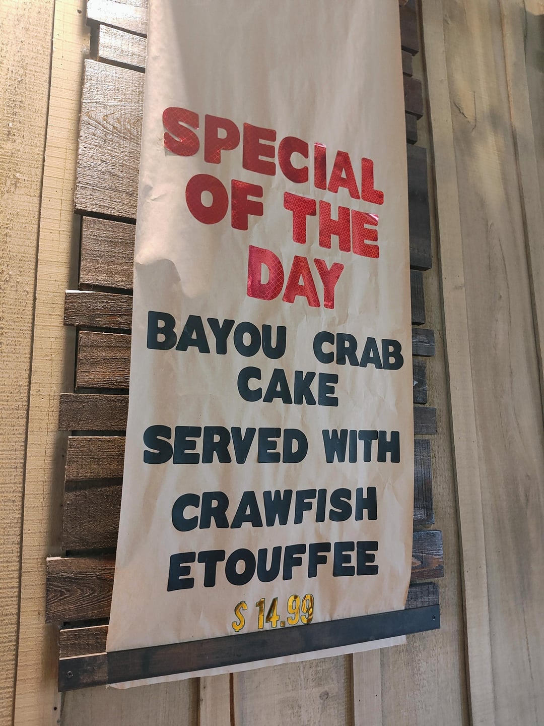 The meal I had was the Bayou Crab Cake and Crawfish Etouffee as the picture before it shows. I have lived in New Orleans for a year and a half and it was one of the best dishes I have had so far. 10/10 hands down.