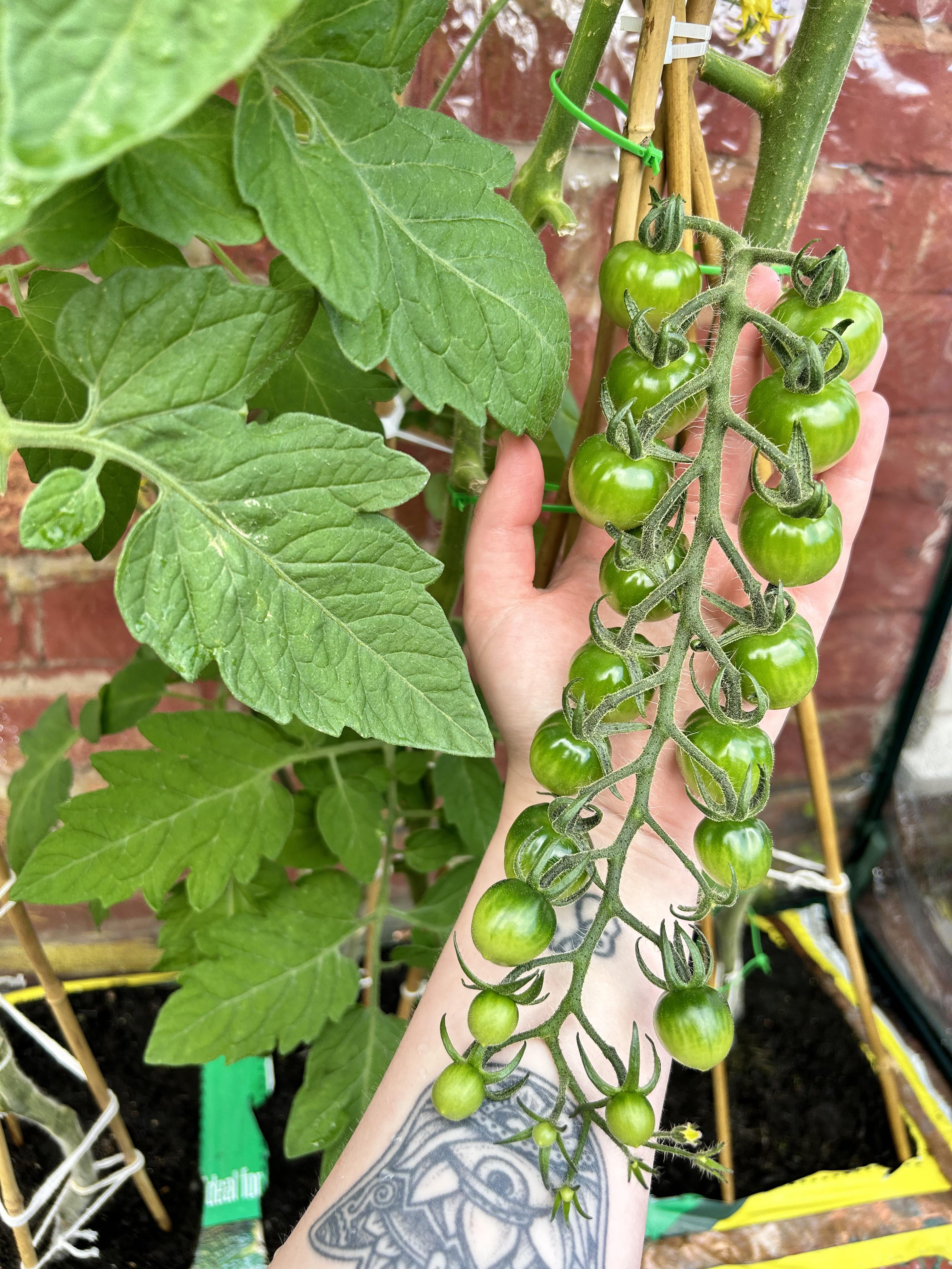 I have a couple clusters like this on my SuperSweet100 plant. I would love for a whole cluster to ripen at the same time so I can pick the whole thing lol